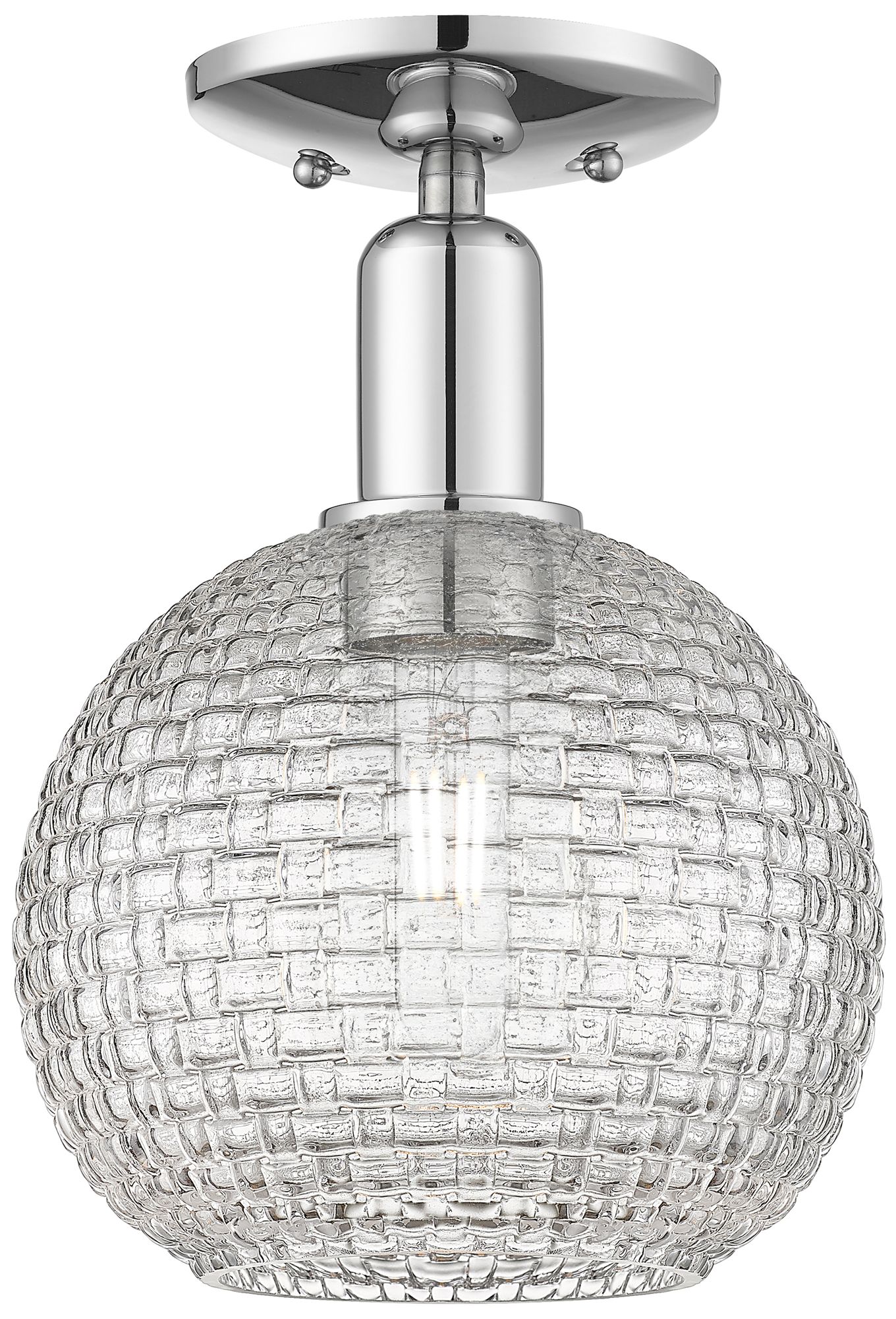Arcadia Athens 8"W Chrome Semi.Flush Mount w/ Clear Basket Weave Shade