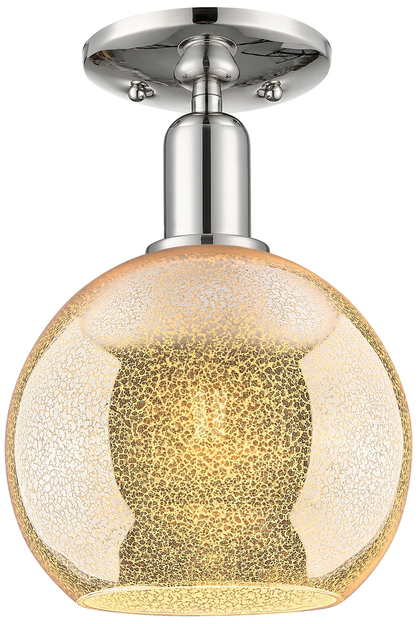 Arcadia Athens 8"W Polished Nickel Semi.Flush Mount With Mercury Shade
