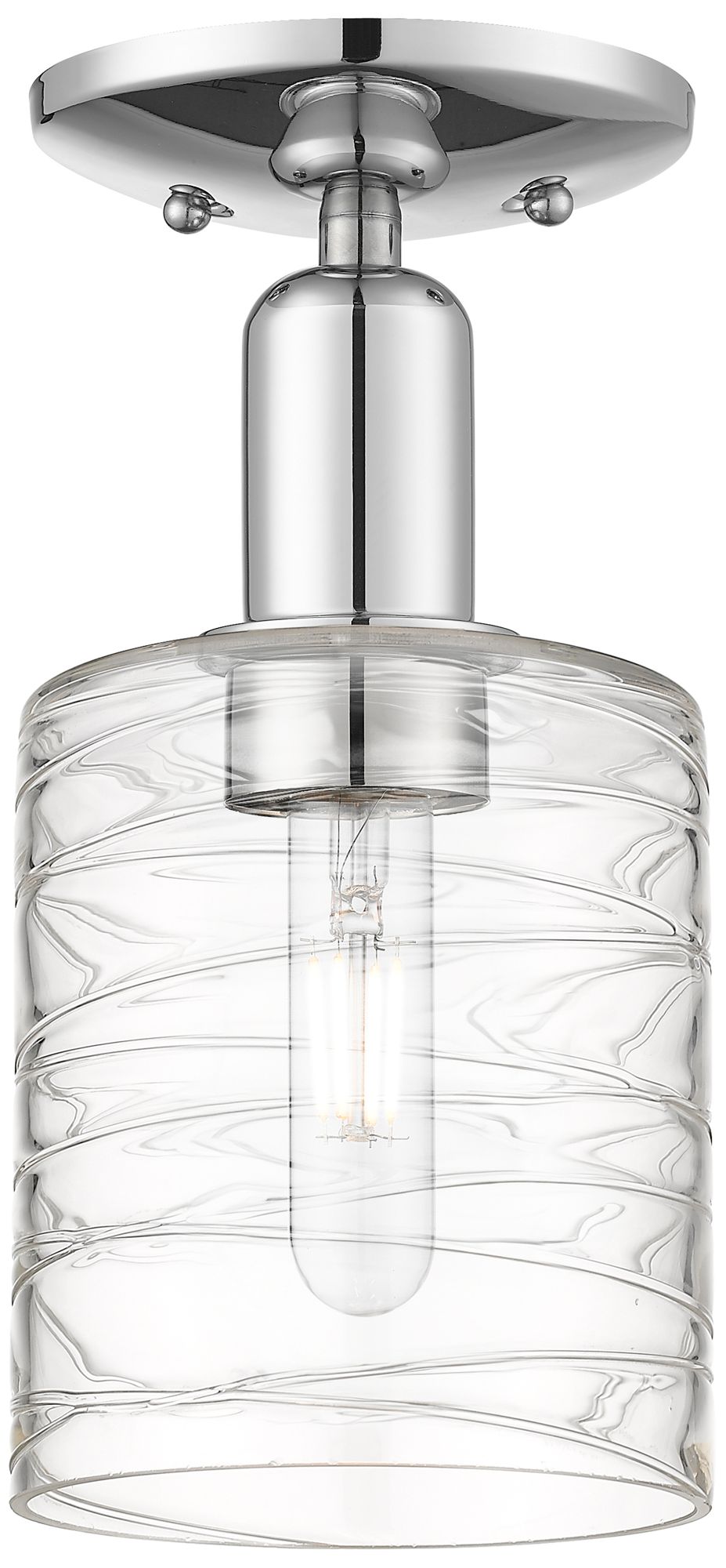 Arcadia Cobbleskill 5"W Chrome Semi.Flush Mount w/ Deco Swirl Shade