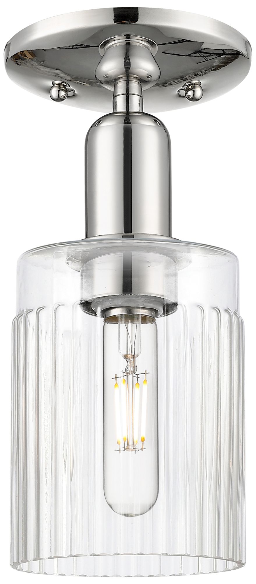 Arcadia Hadley 5"W Polished Nickel Semi.Flush Mount With Clear Shade