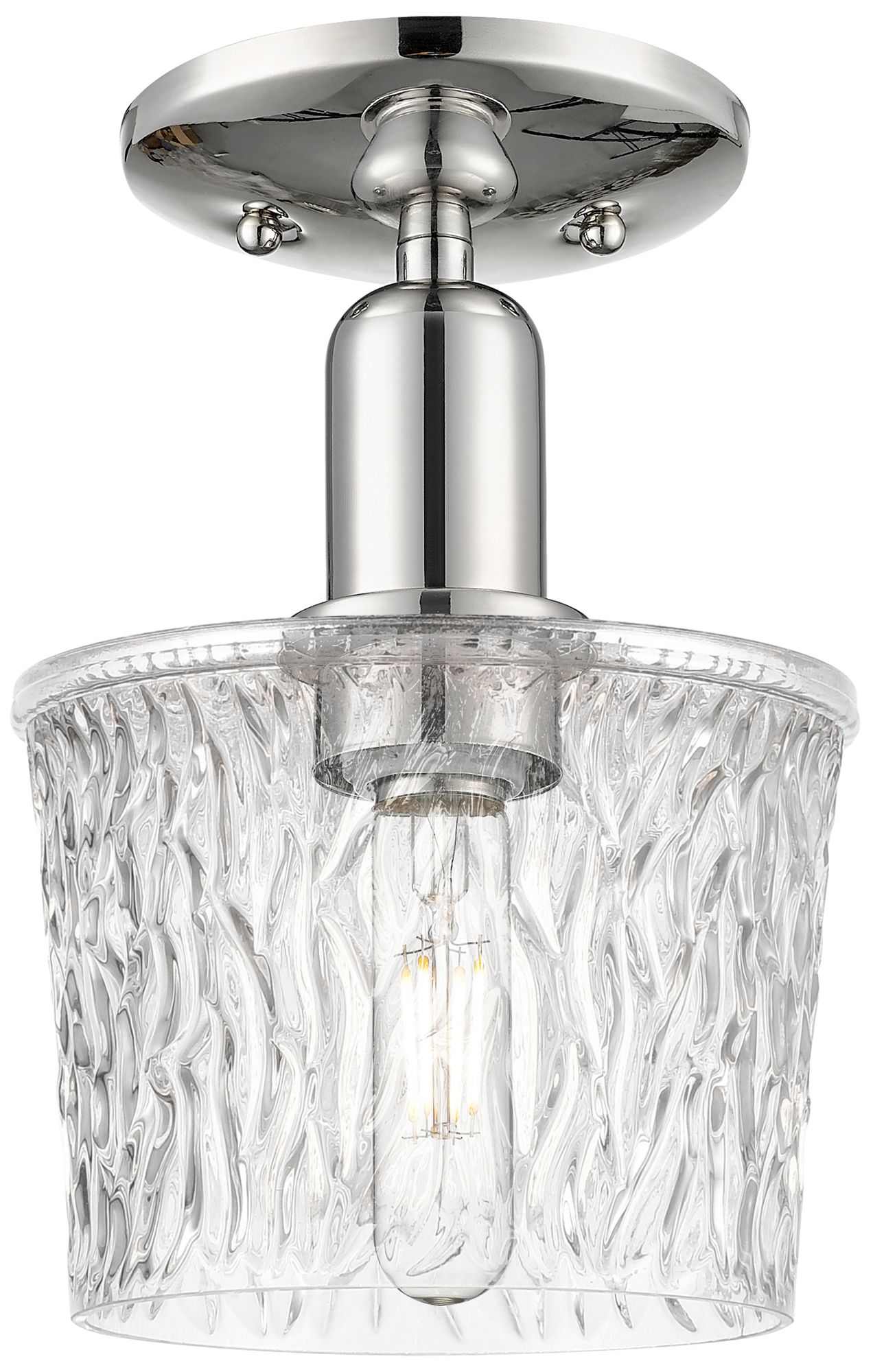 Arcadia Athens 6"W Polished Nickel Semi-Flush w/ Water Glass Shade