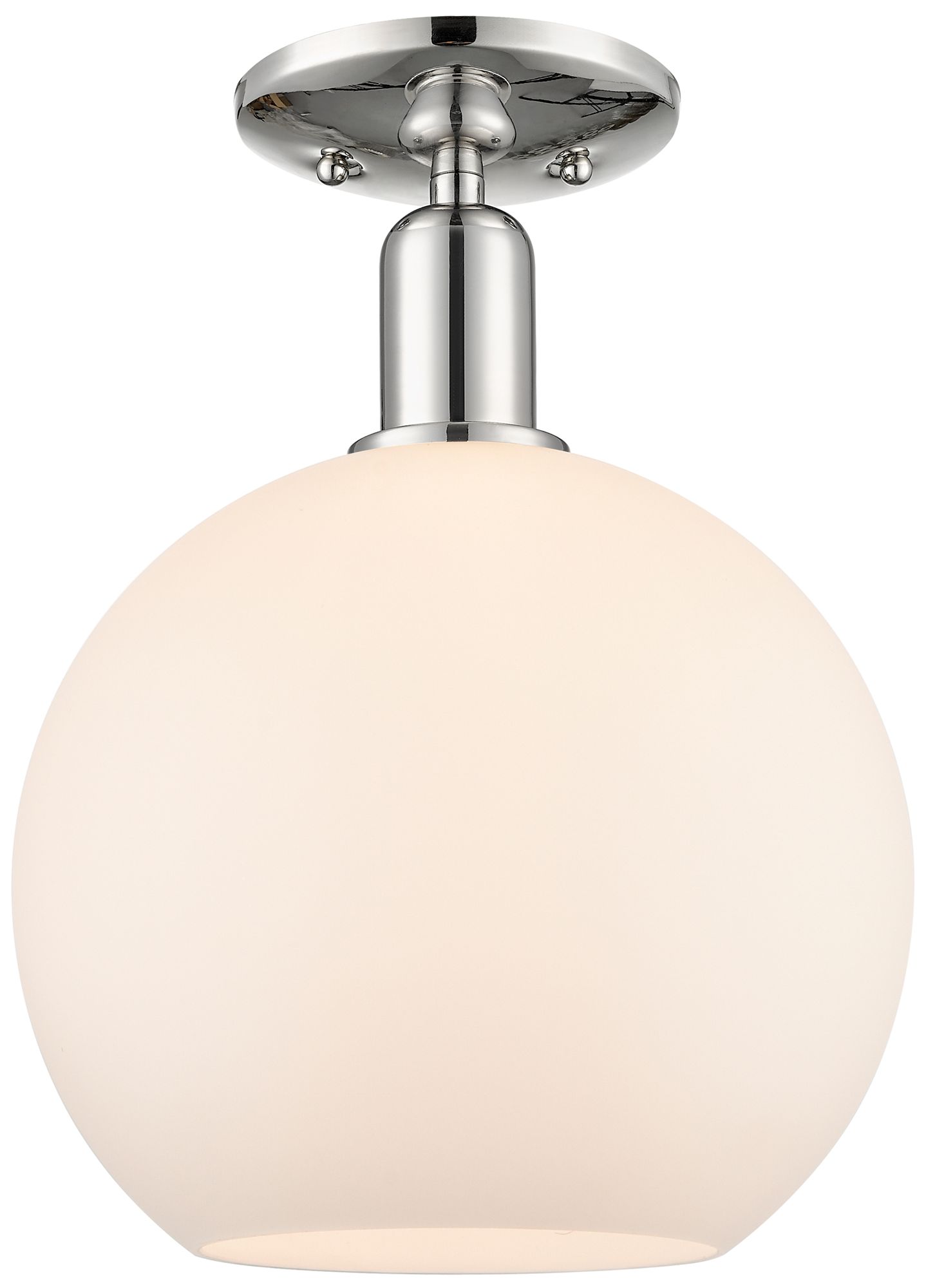 Arcadia Athens 12"W Polished Nickel Semi-Flush w/ Matte White Shade