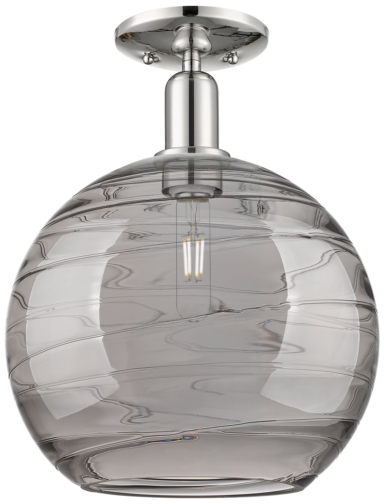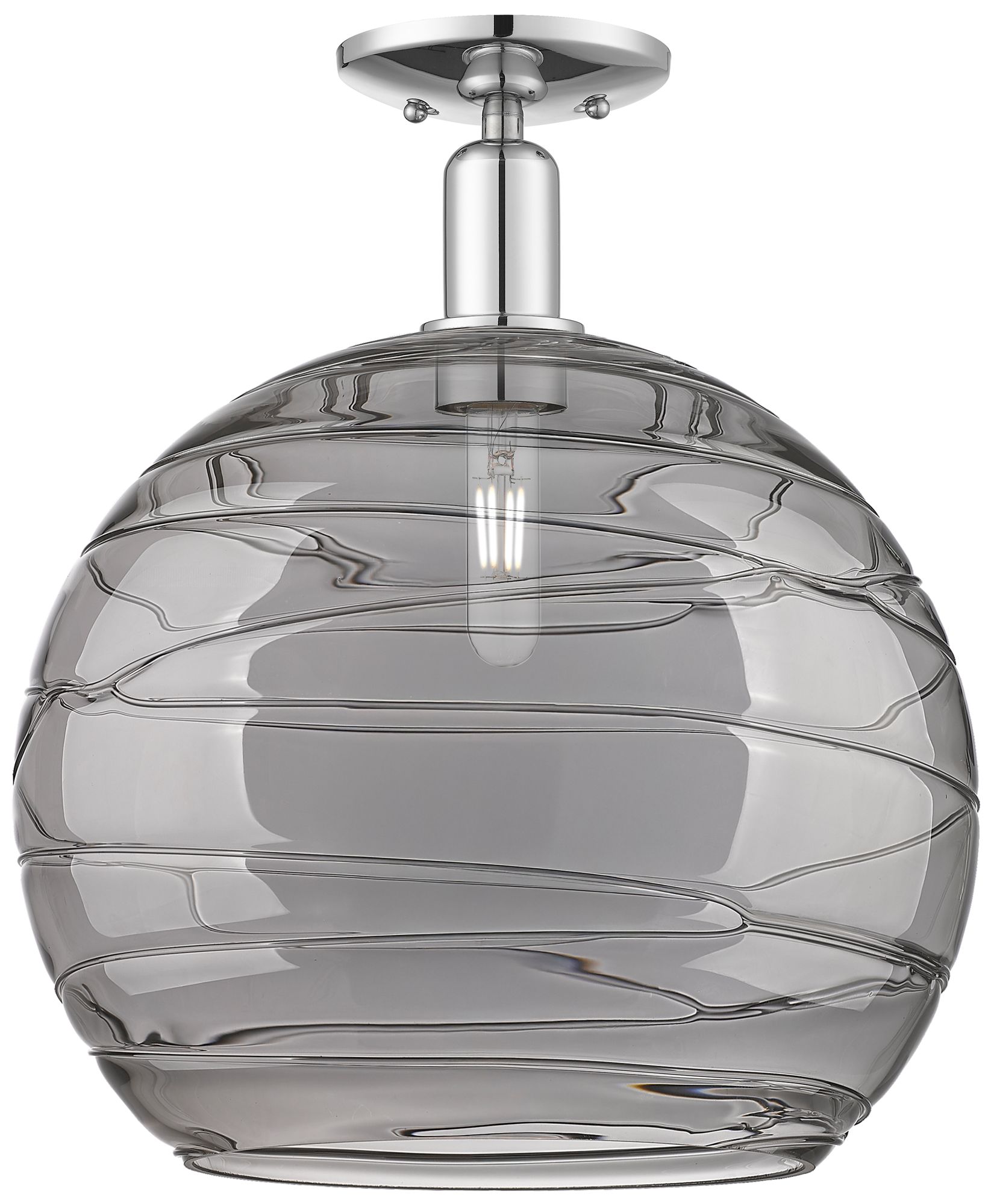 Arcadia Athens 14"W Chrome Semi-Flush w/ Light Smoke Deco Swirl Shade