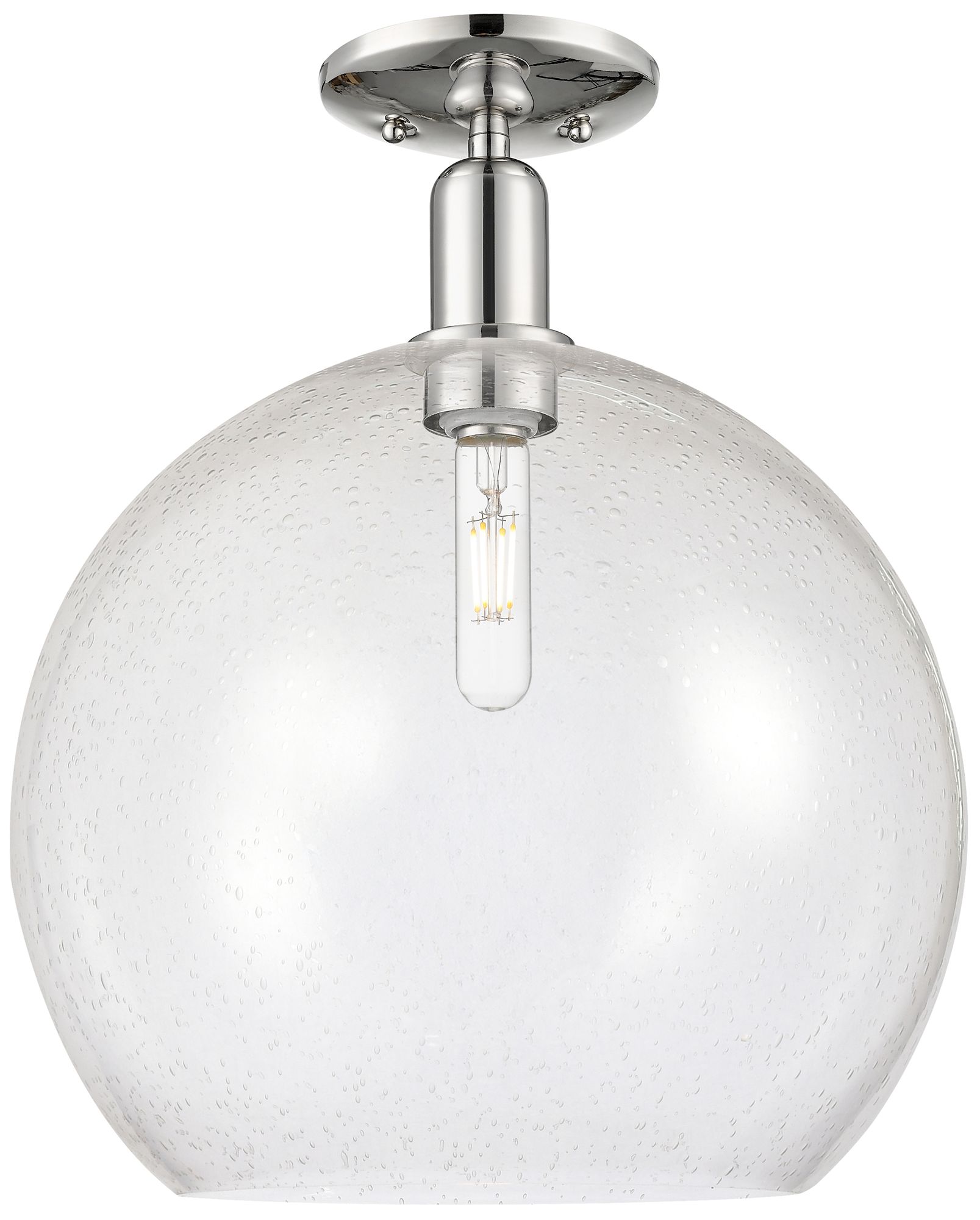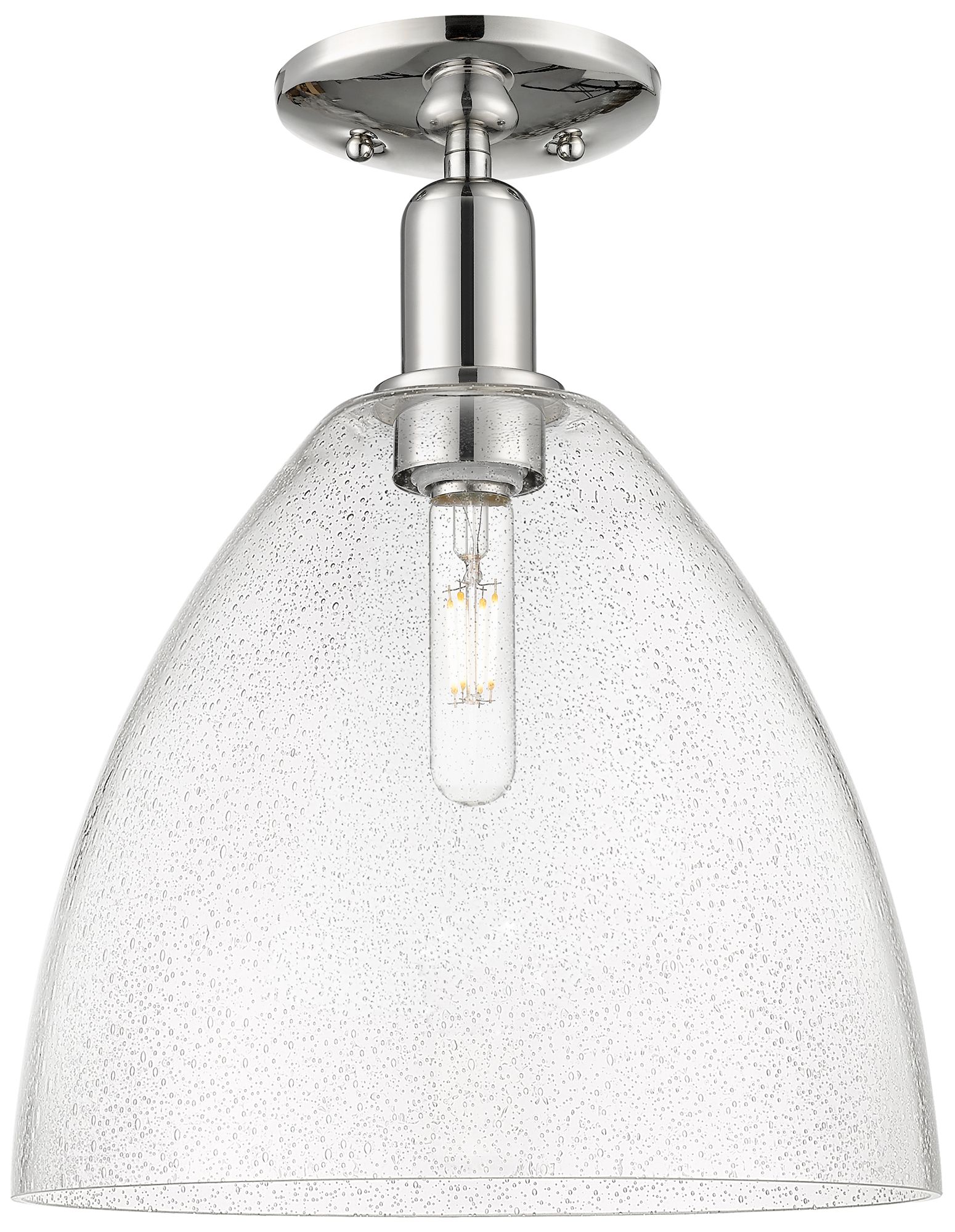 Arcadia Bristol 12"W Polished Nickel Semi.Flush Mount With Seedy Shade