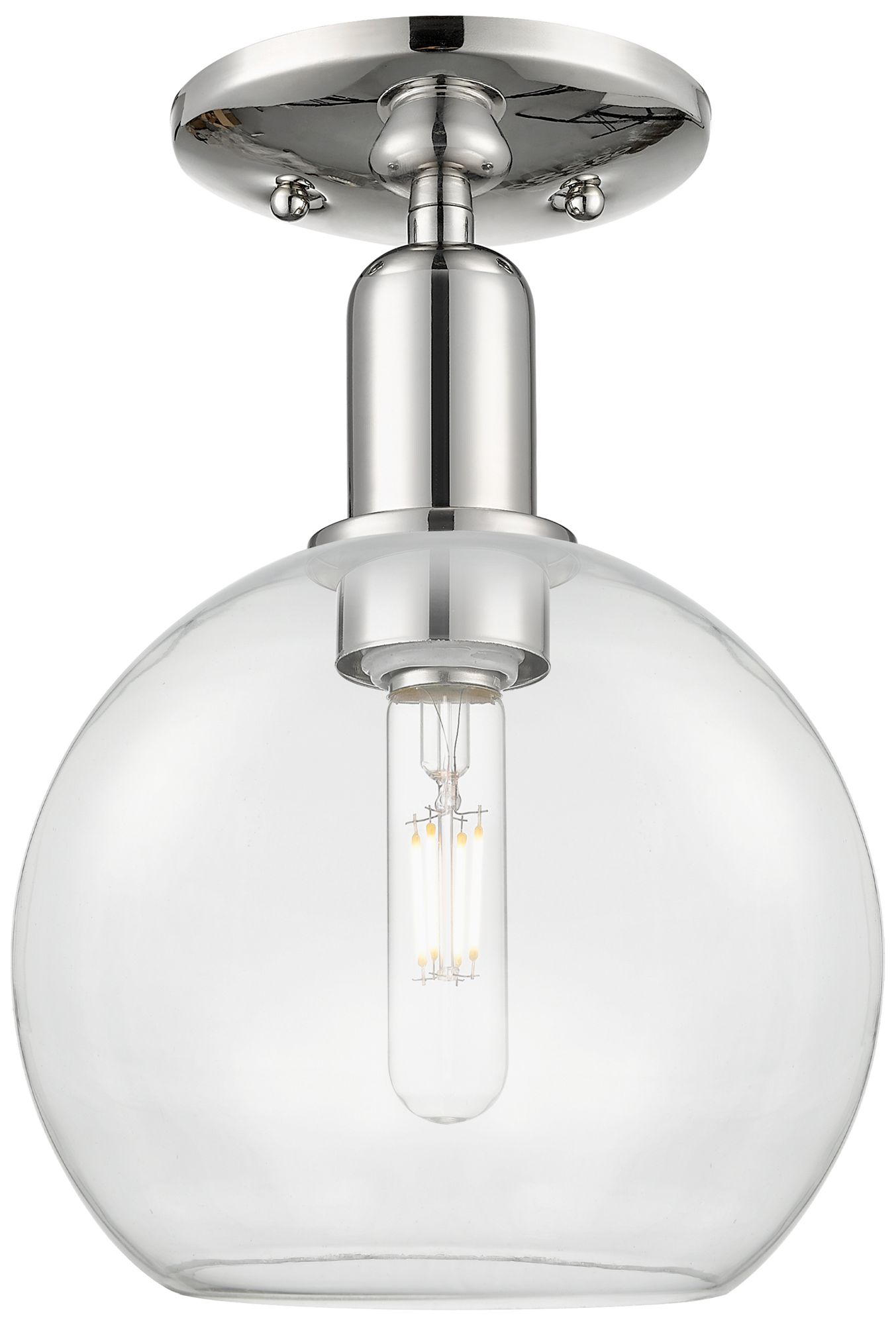 Arcadia Athens 8"W Polished Nickel Semi.Flush Mount With Clear Shade