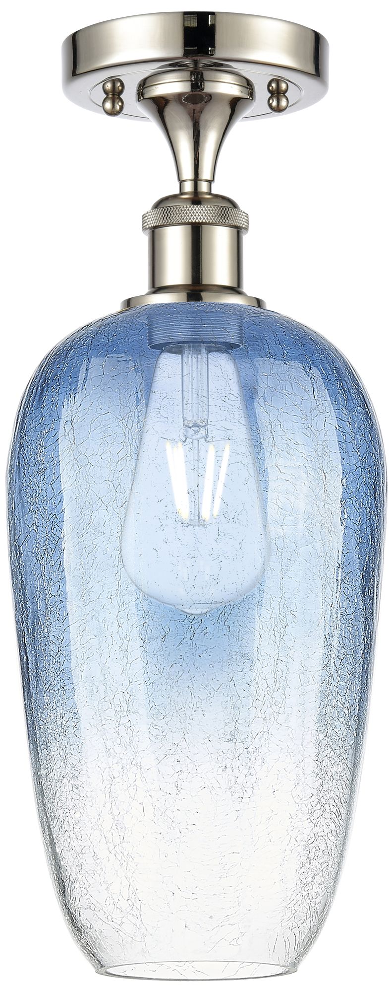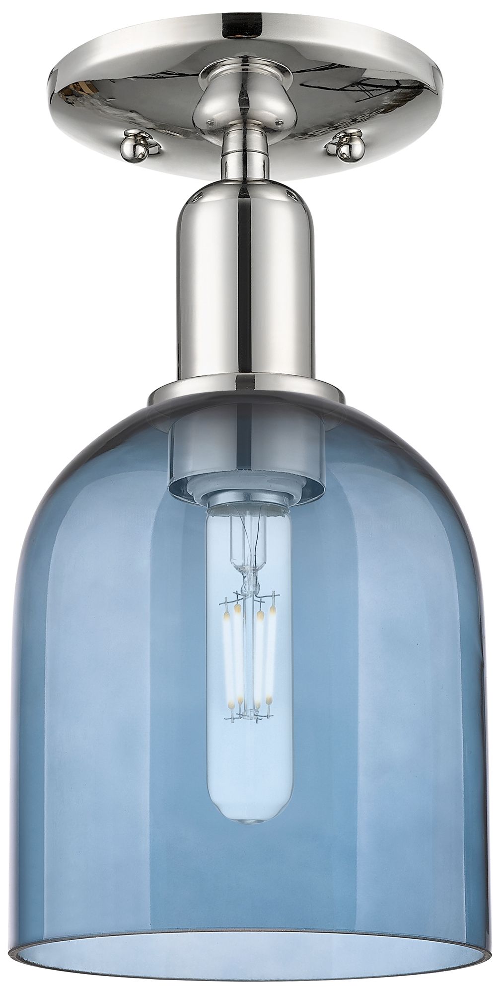 Arcadia Bella 6" Wide Polished Nickel Semi.Flush Mount With Blue Shade