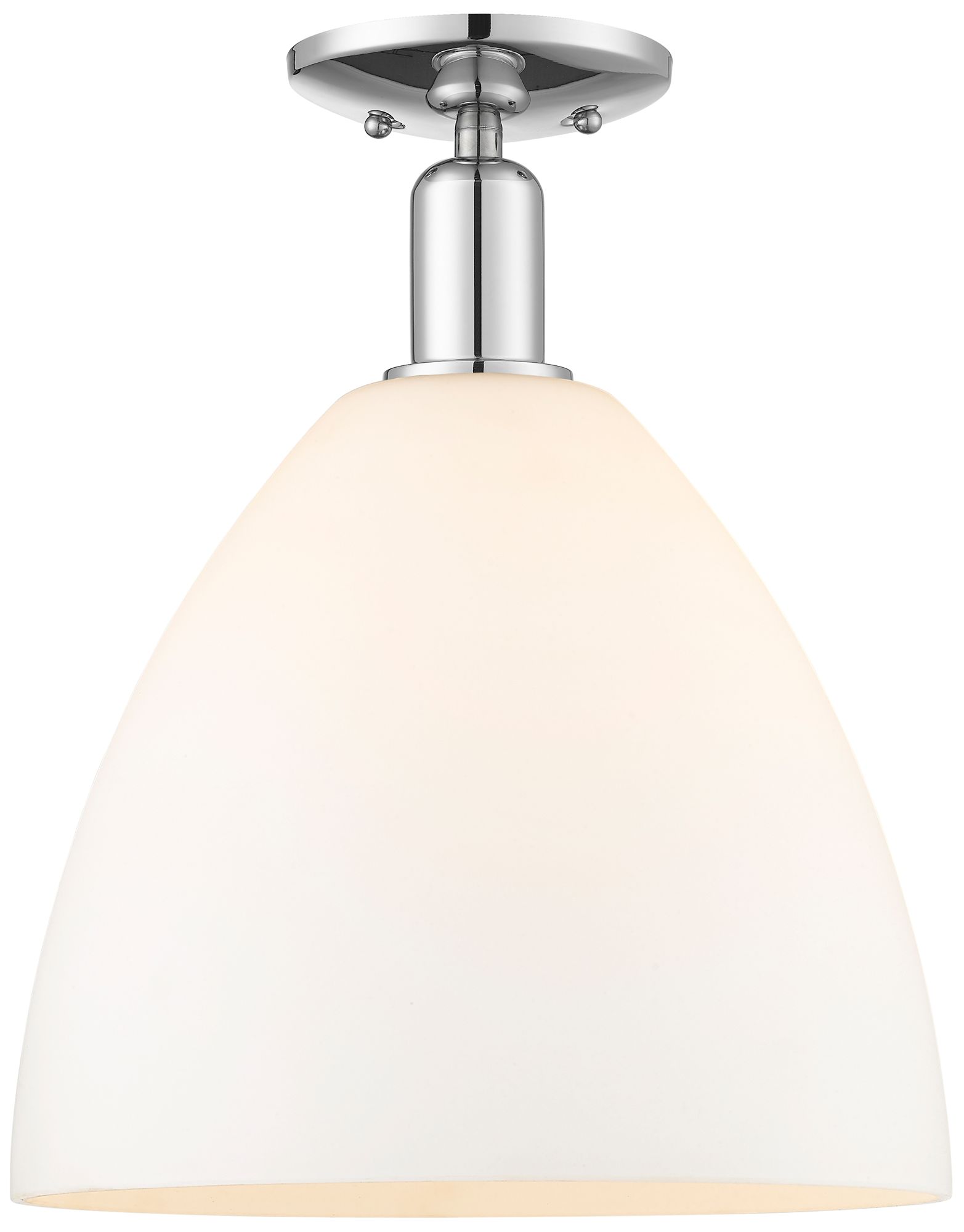 Arcadia Bristol 12"W Chrome Semi.Flush Mount w/ Matte White Shade