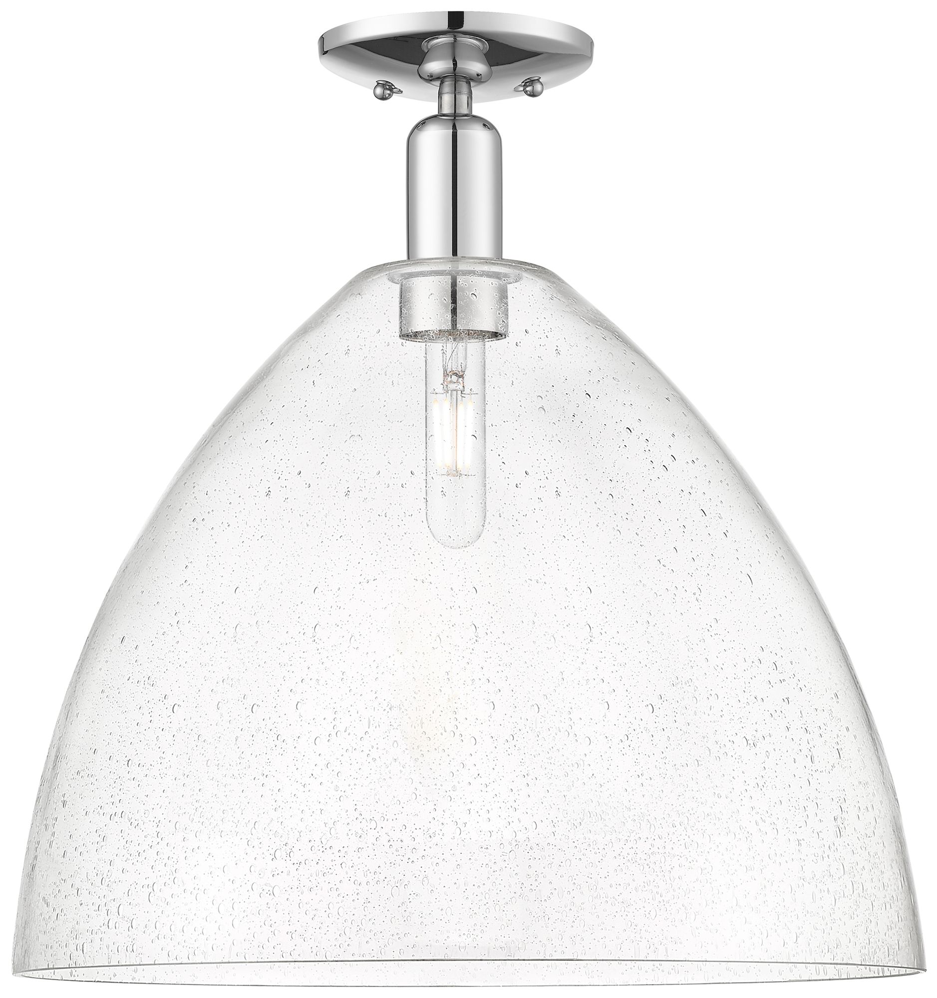 Arcadia Bristol 16"W Polished Chrome Semi.Flush Mount With Seedy Shade