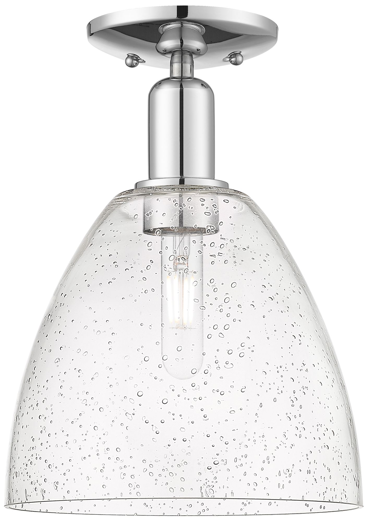 Arcadia Bristol 9"W Polished Chrome Semi.Flush Mount With Seedy Shade