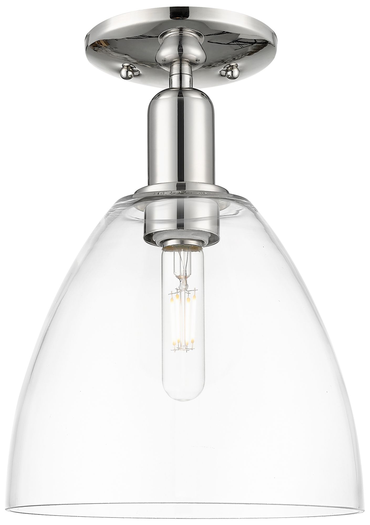 Arcadia Bristol 9"W Polished Nickel Semi.Flush Mount With Clear Shade