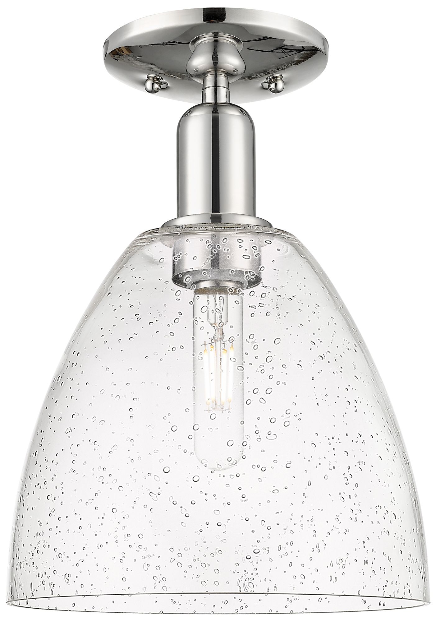 Arcadia Bristol 9"W Polished Nickel Semi.Flush Mount With Seedy Shade