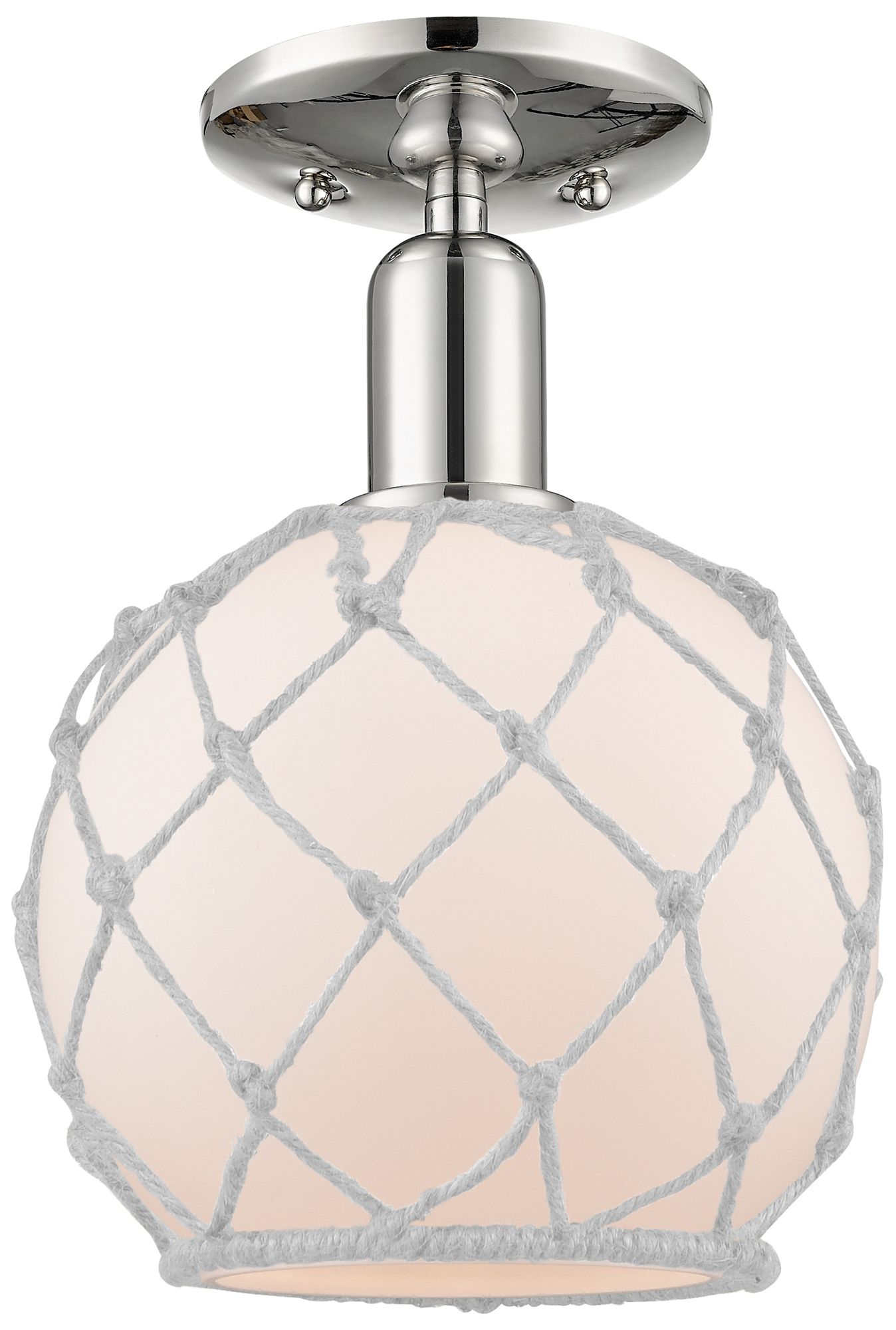 Arcadia Orwell 8"W Polished Nickel Semi-Flush w/ Matte White Shade