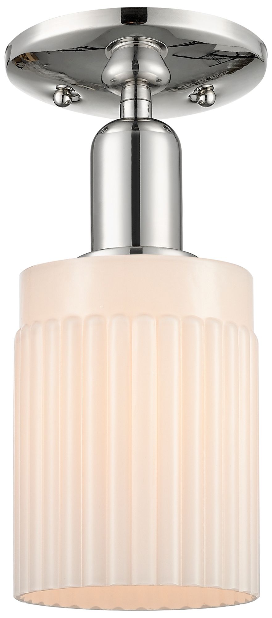 Arcadia Brookfield 6"W Polished Nickel Semi.Flush Mount w/ White Shade