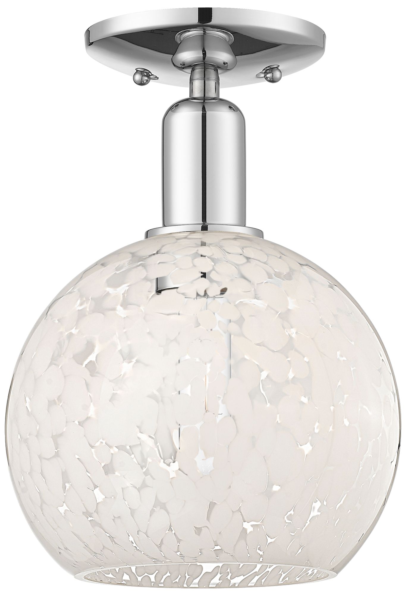 Arcadia White Mouchette 8" Wide Polished Chrome Semi.Flush Mount With