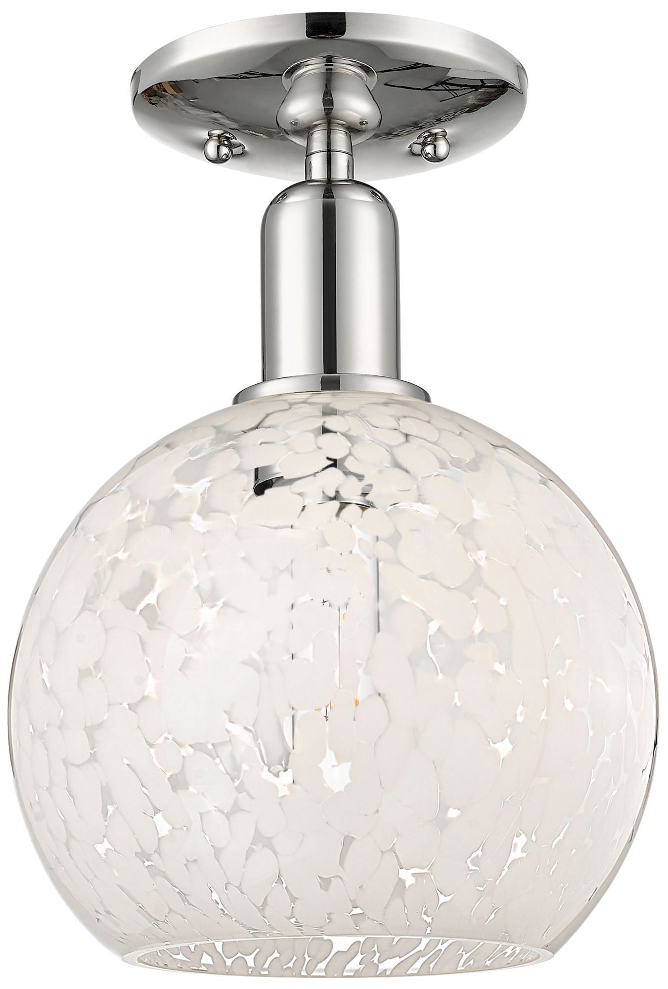 Arcadia White Mouchette 8" Wide Polished Nickel Semi.Flush Mount With
