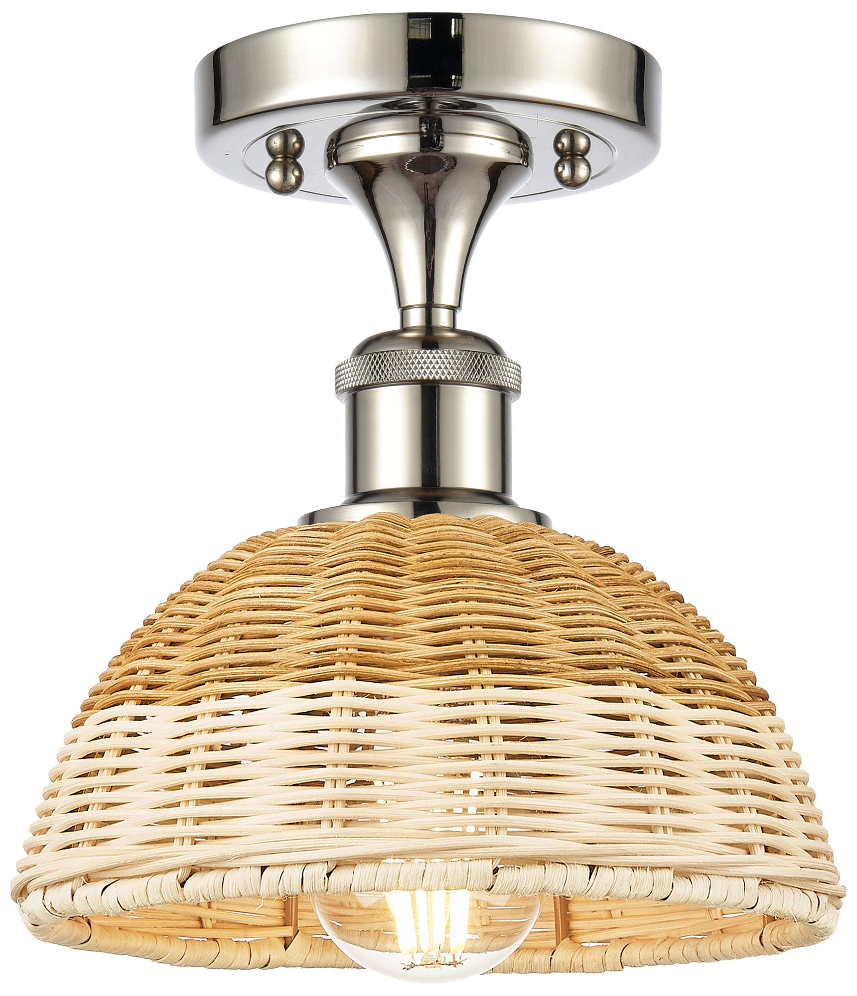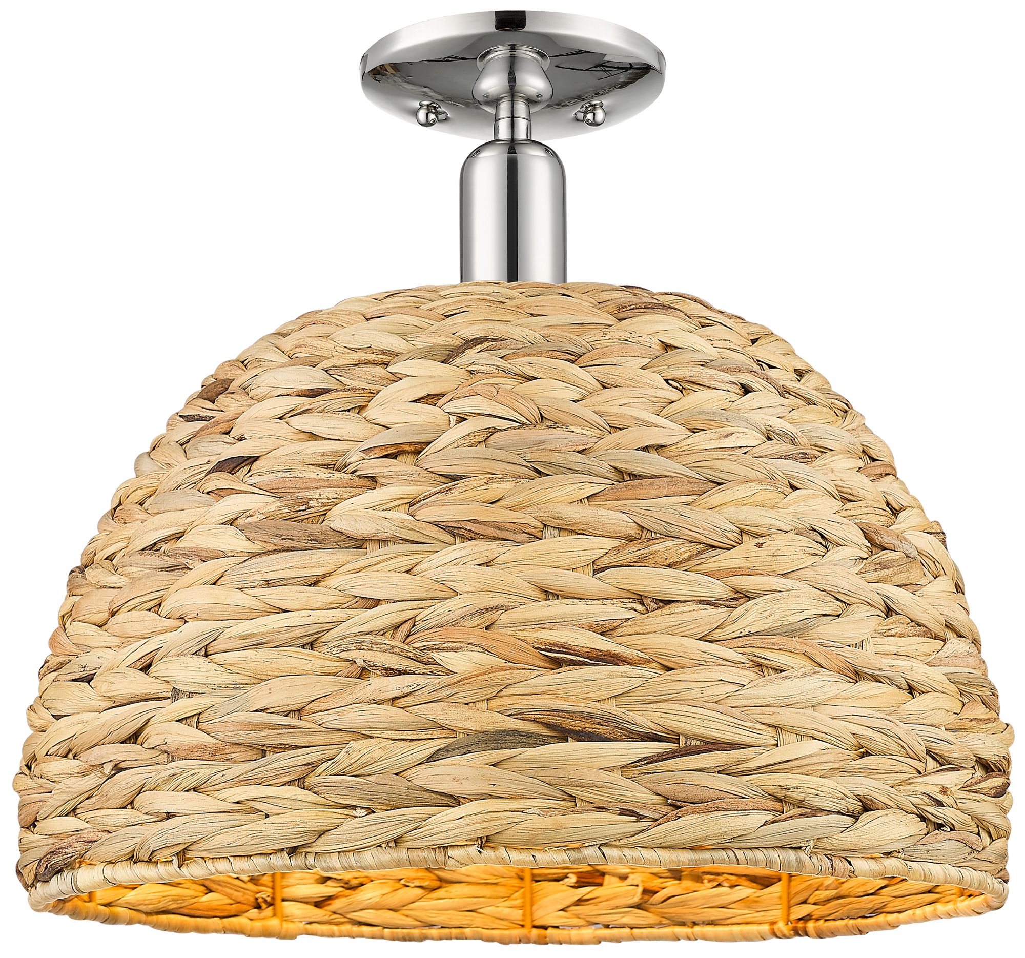 Edison Woven Rattan 16" Wide Polished Chrome Semi.Flush Mount With
