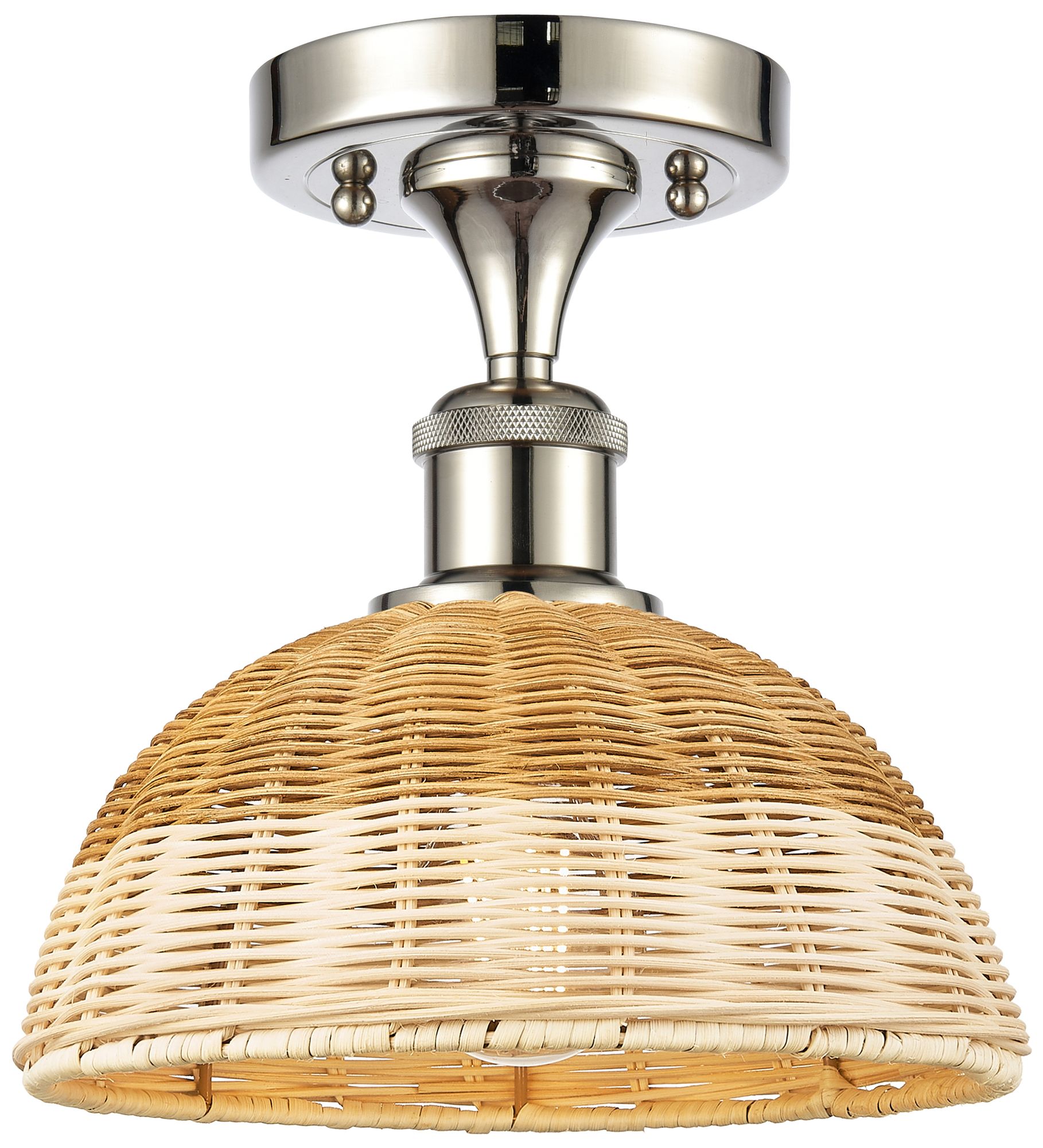 Edison Woven Rattan 16" Wide Polished Nickel Semi.Flush Mount With