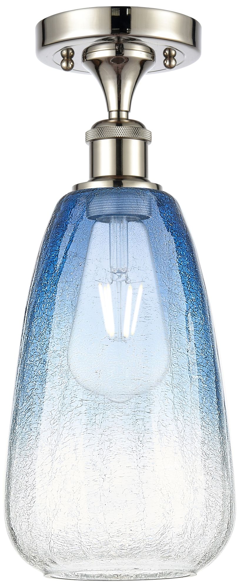 Ballston Brookhaven Almond 6"W Polished Nickel Semi-Flush w/ Blue Shade