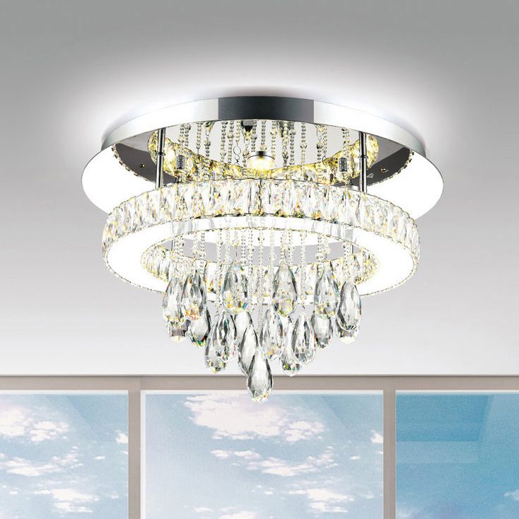 Avenue Lighting Beverly Dr. Round Shade & Crystal Dual Mount 20" Silver