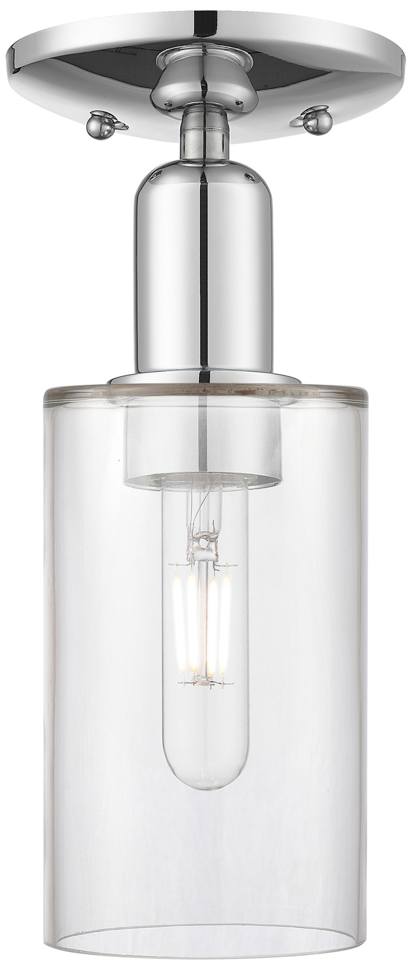 Arcadia Clymer 4"W Polished Chrome Semi.Flush Mount With Clear Shade