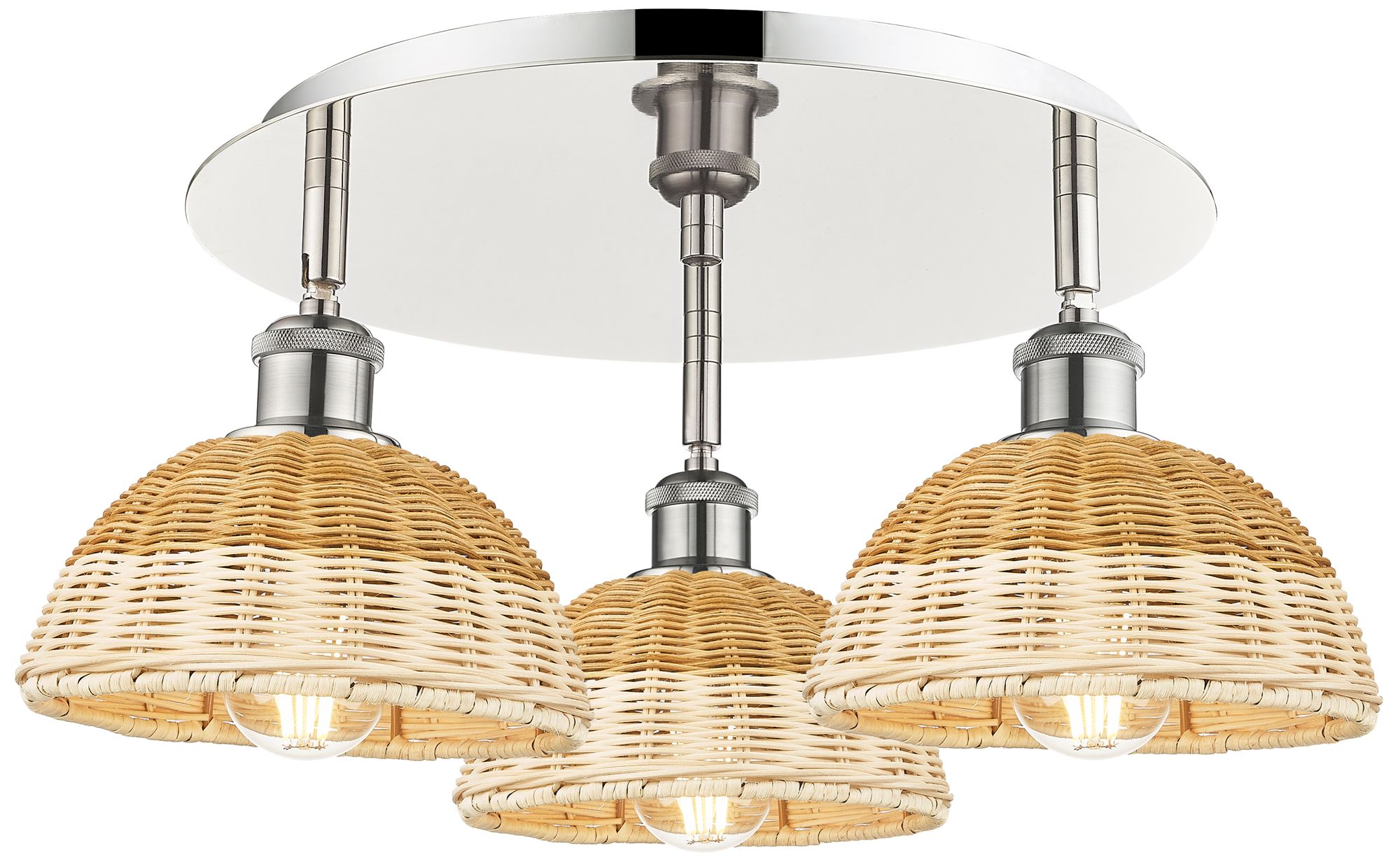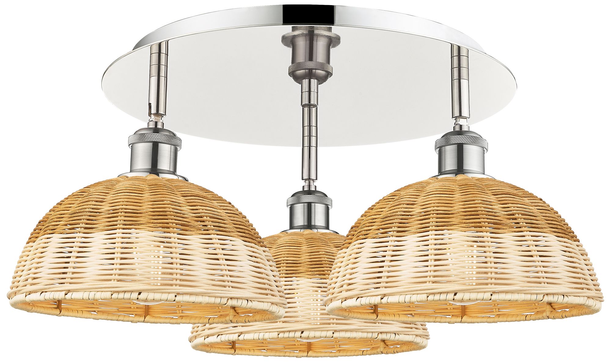 Ballston Woven Rattan 20" Wide 3 Light Polished Nickel Flush Mount