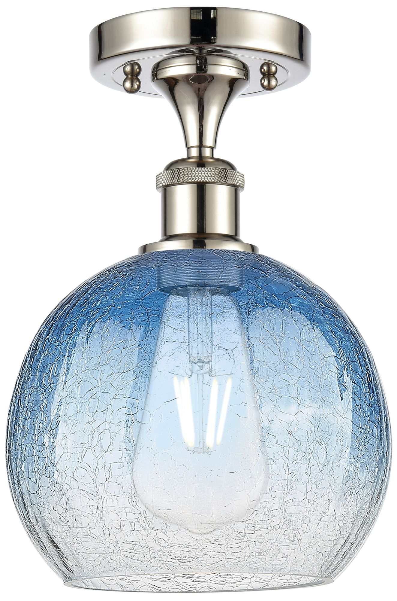 Ballston Brookhaven Globe 8"W Polished Nickel Semi-Flush w/ Sapphire Shade