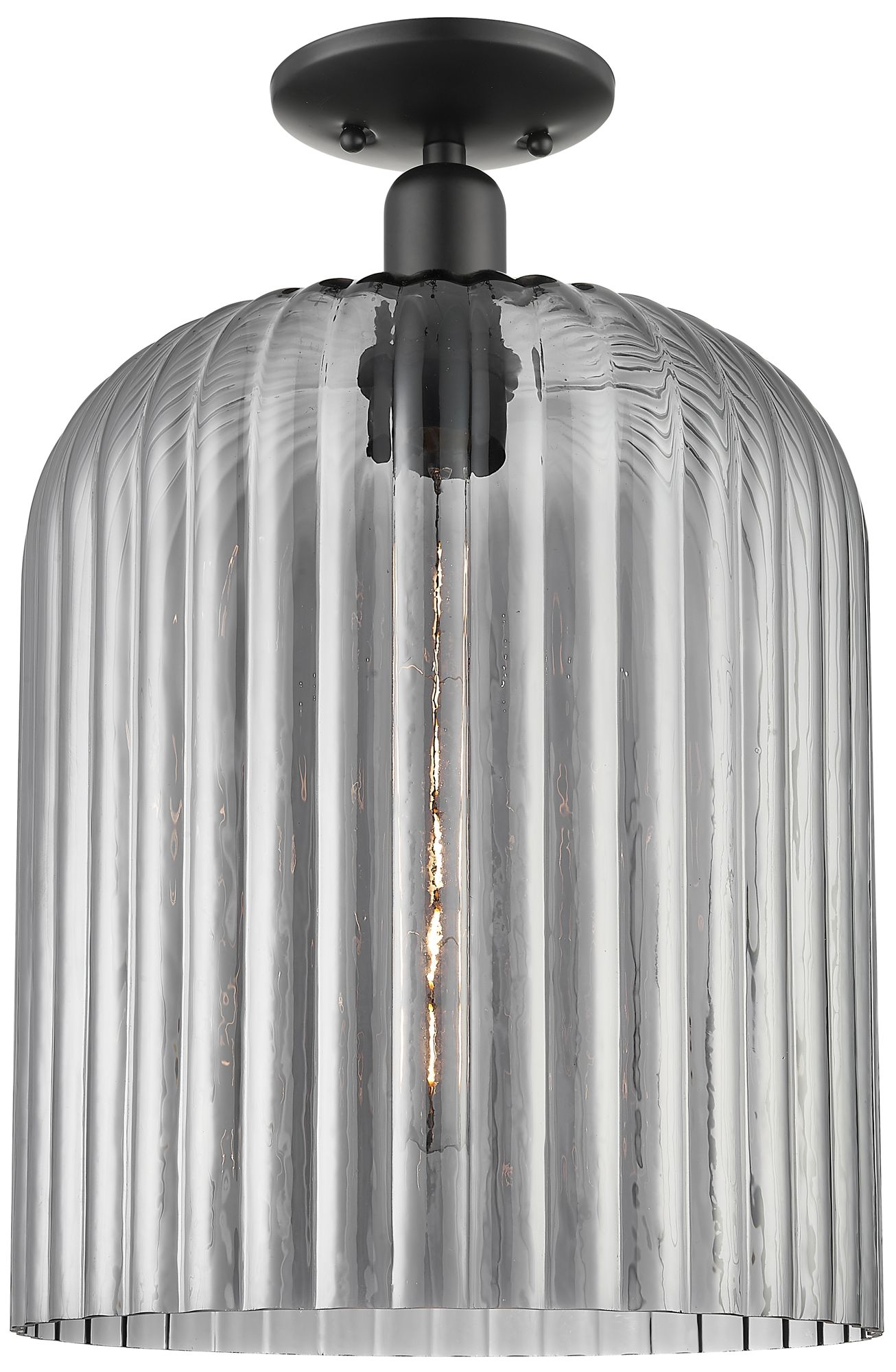Downtown Bridal Veil 12"W Black Semi Flush Mount w/ Light Smoke Shade