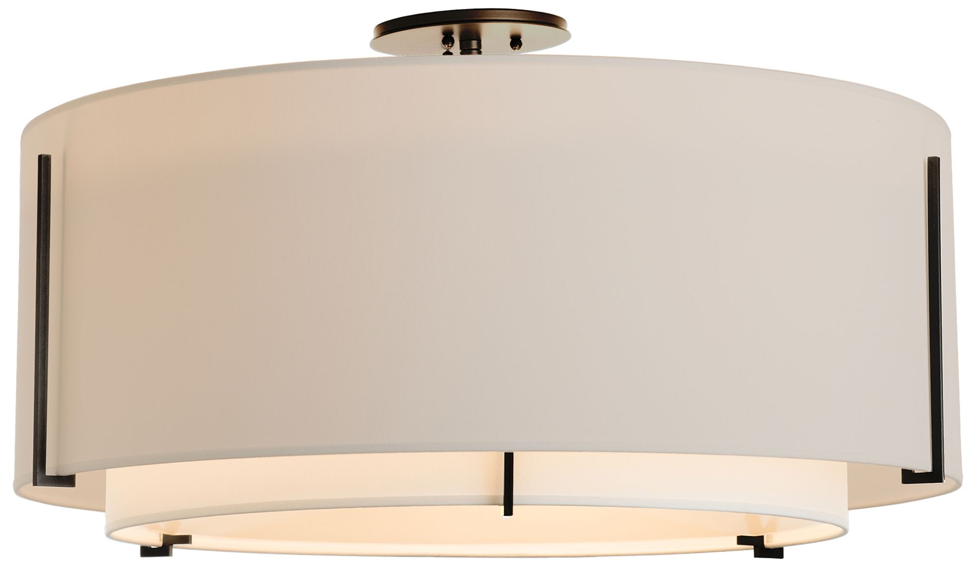 Exos Large Double Shade Semi-Flush - Bronze Finish - Natural & Flax Sha