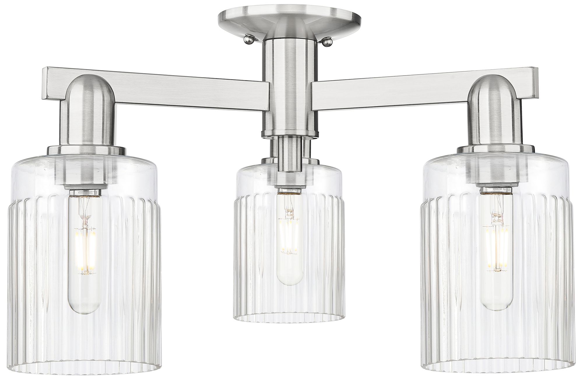 Arcadia Hadley 22"W 3 Light Brushed Nickel Semi-Flush w/ Clear Shade