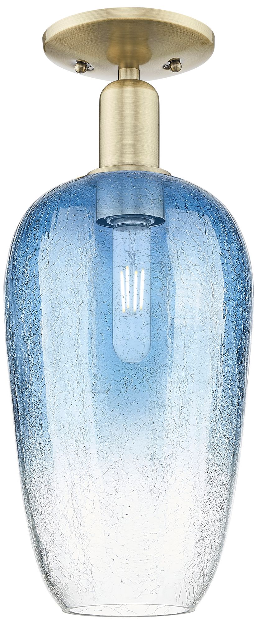 Brookhaven Flute 7"W Antique Brass Semi-Flush Mount With Sapphire Shade