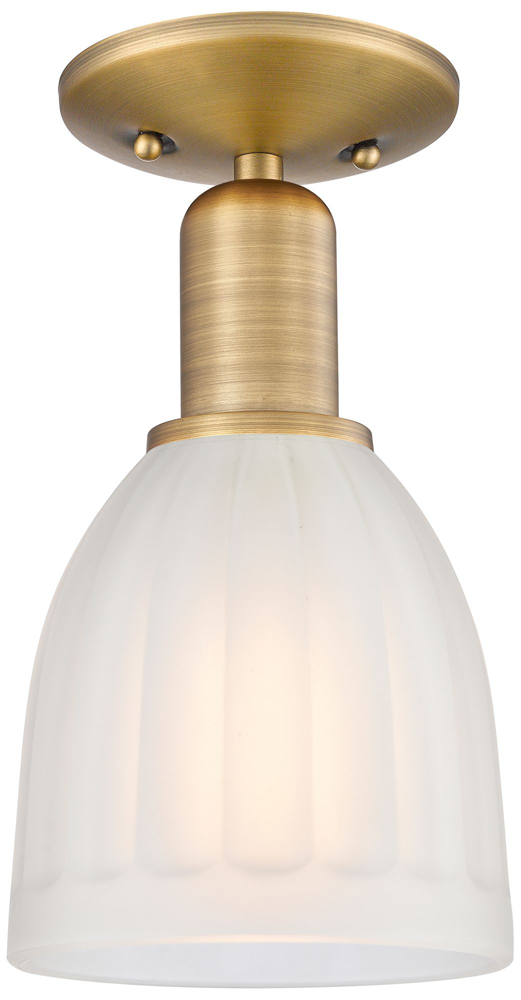 Arcadia Brookfield 6"W Brushed Brass Semi.Flush Mount With White Shade