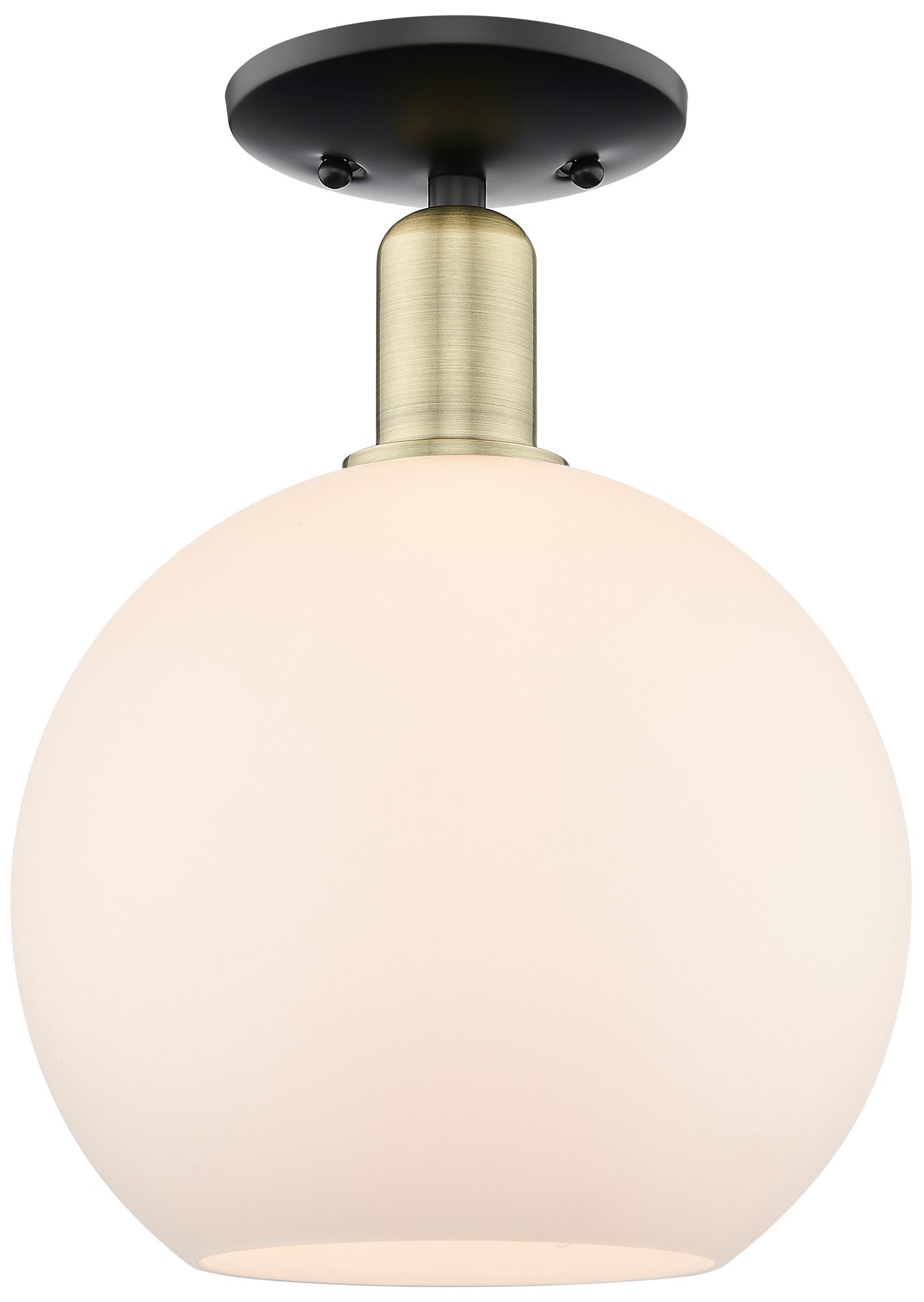 Arcadia Athens 10"W Black Brass Semi.Flush Mount w/ Matte White Shade