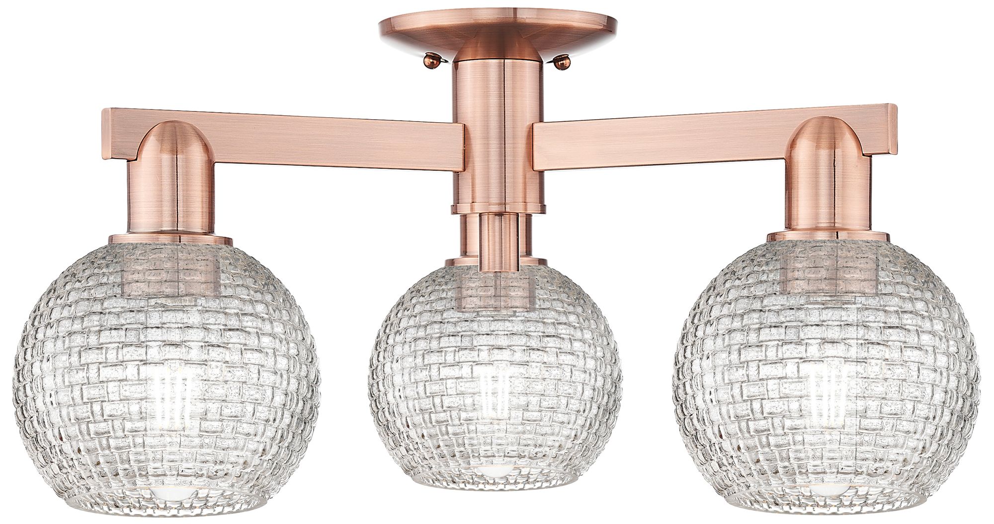 Arcadia Athens 23"W 3-Lt Copper Semi-Flush w/ Clear Basket Weave Shade