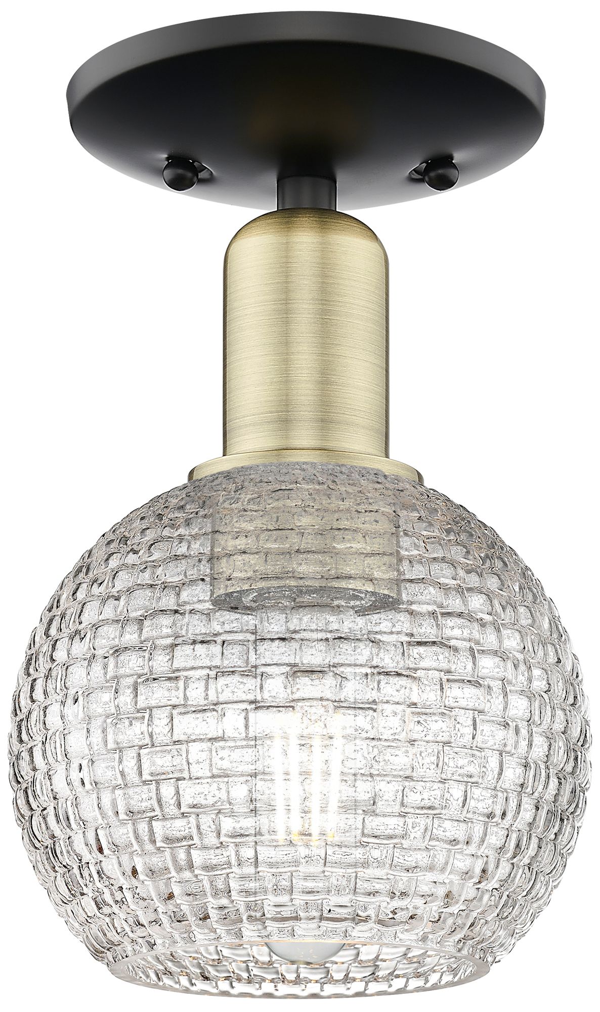 Arcadia Athens 6"W Black Brass Semi-Flush w/ Clear Basket Weave Shade