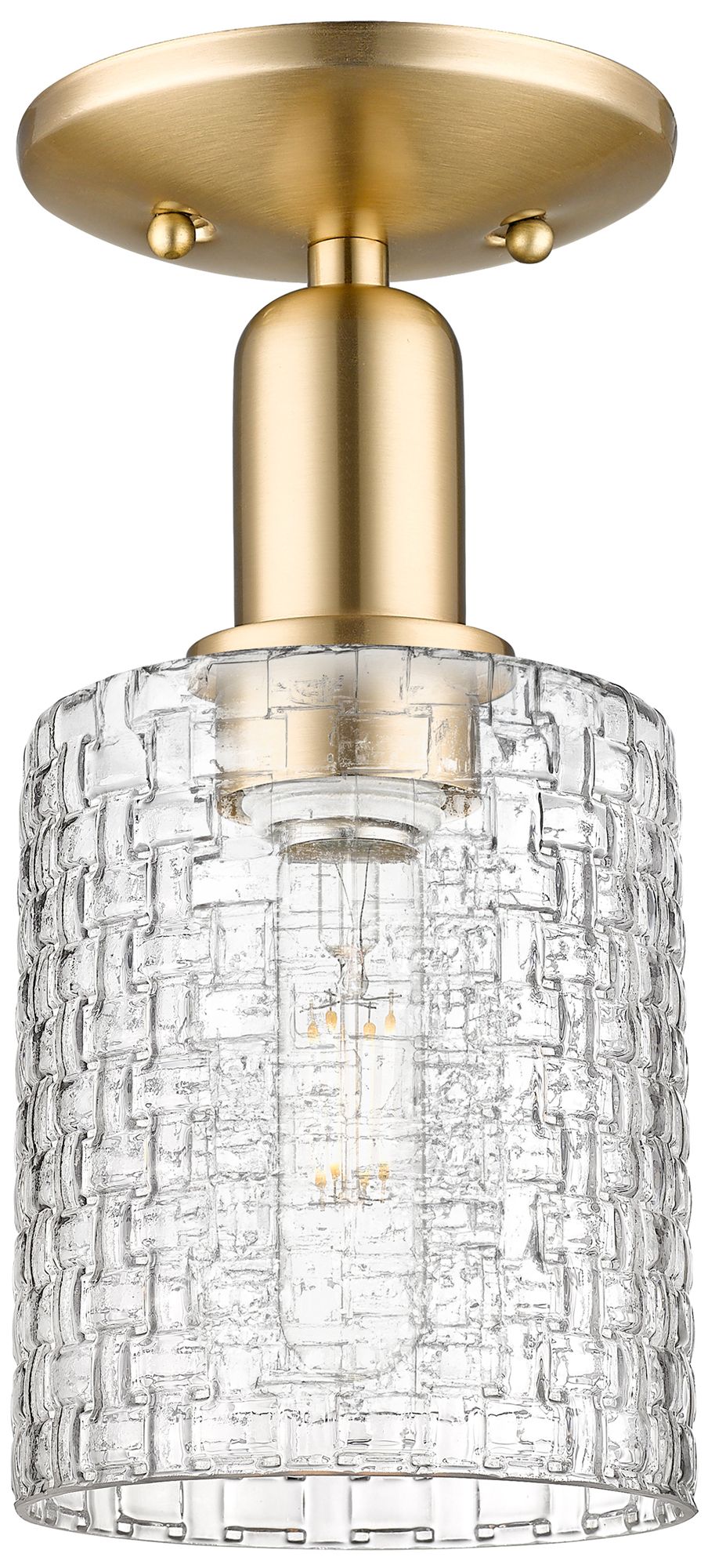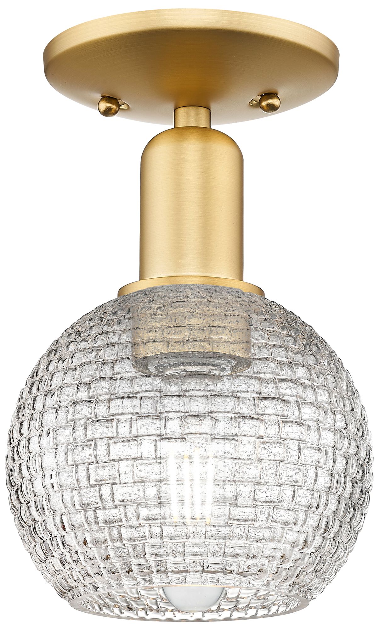 Arcadia Athens 6"W Gold Semi.Flush Mount w/ Clear Basket Weave Shade