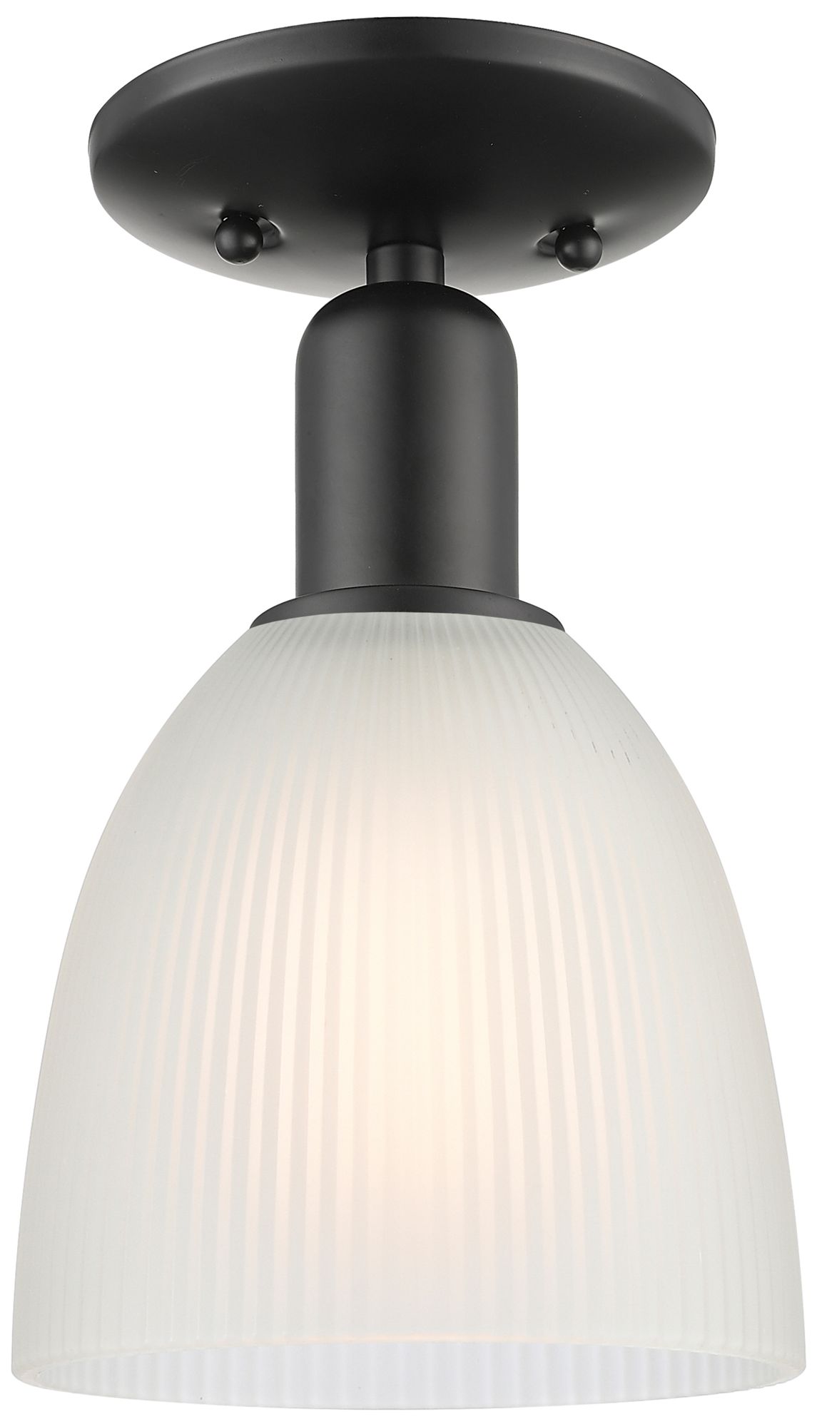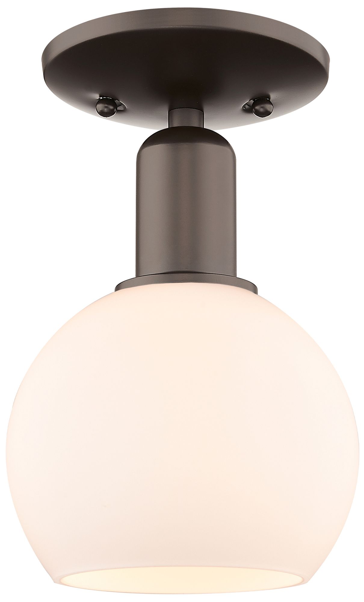 Arcadia Athens 6"W Oiled Bronze Semi.Flush Mount w/ Matte White Shade