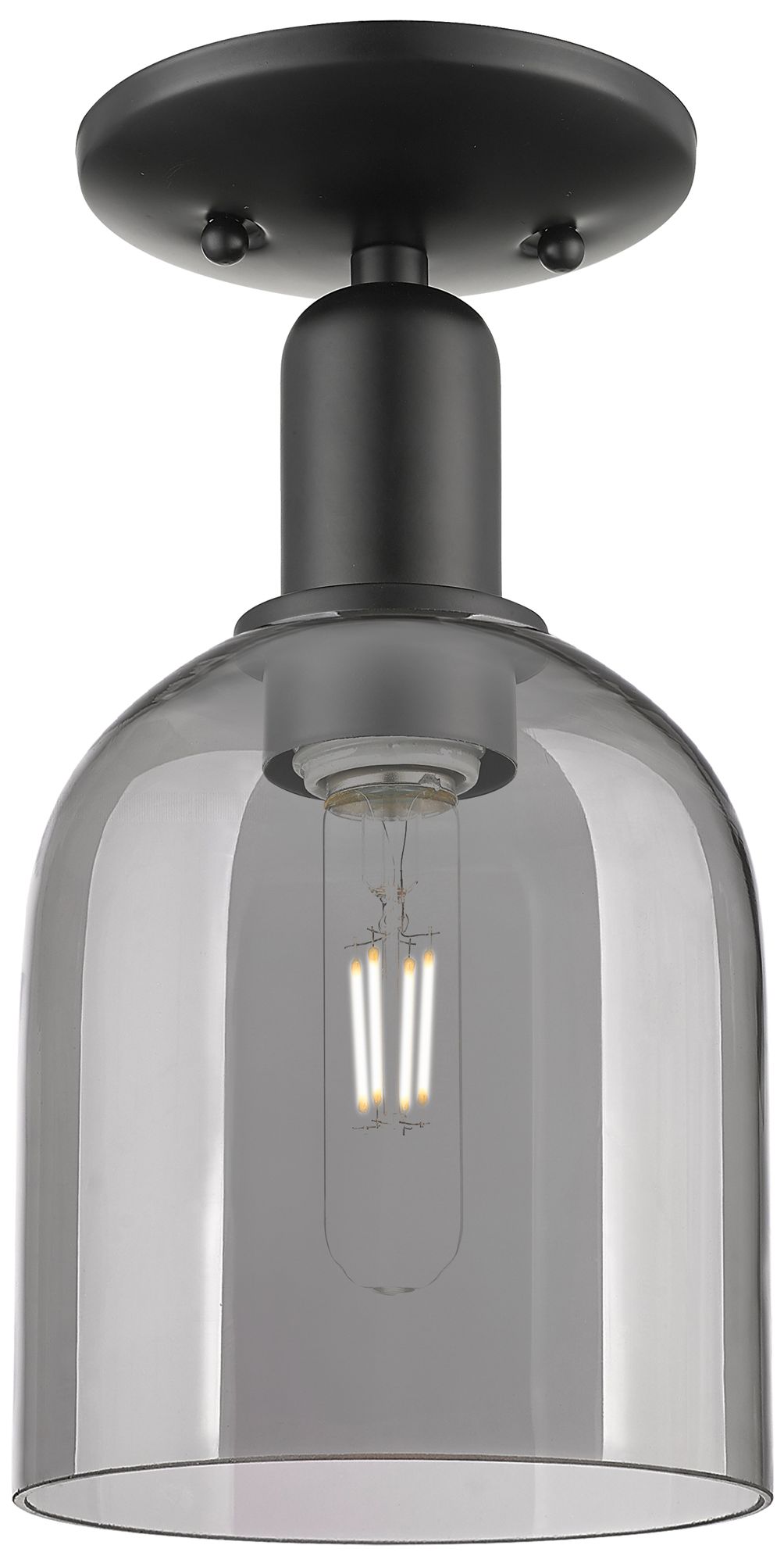 Arcadia Bella 6"W Matte Black Semi.Flush Mount With Light Smoke Shade