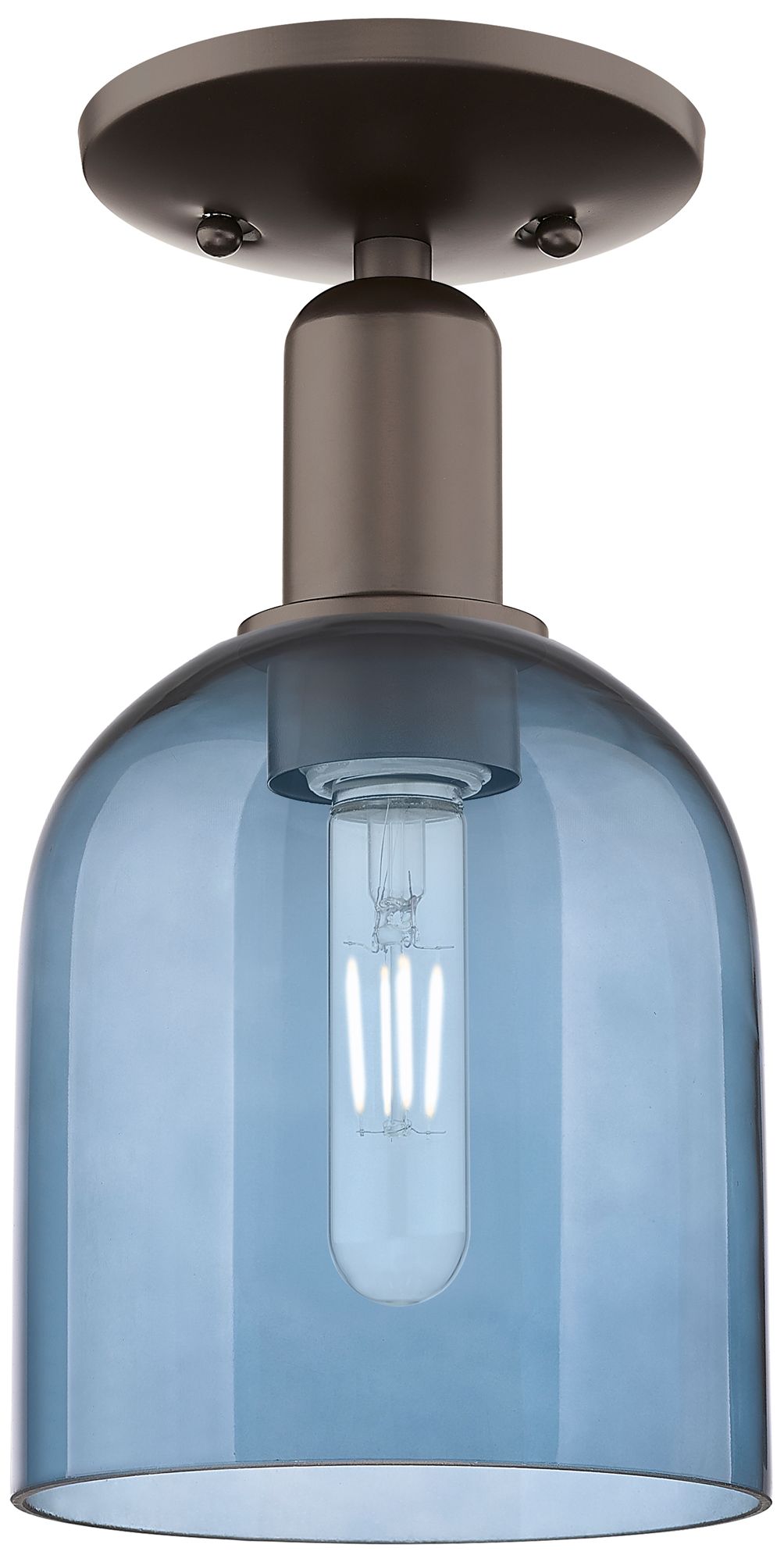 Arcadia Bella 6"W Oil Rubbed Bronze Semi.Flush Mount With Blue Shade