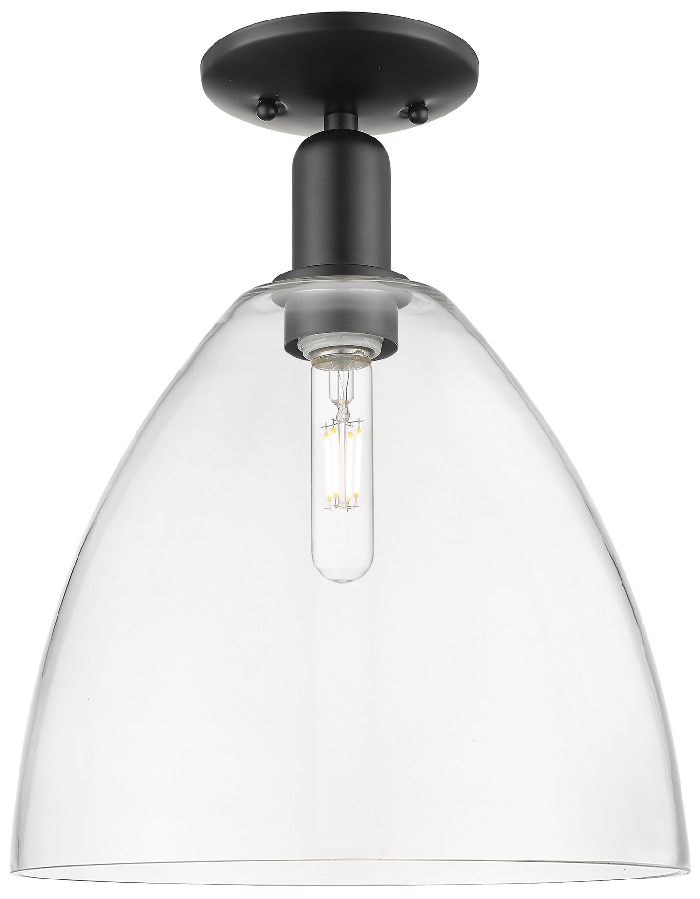 Arcadia Bristol 12" Wide Matte Black Semi.Flush Mount With Clear Shade