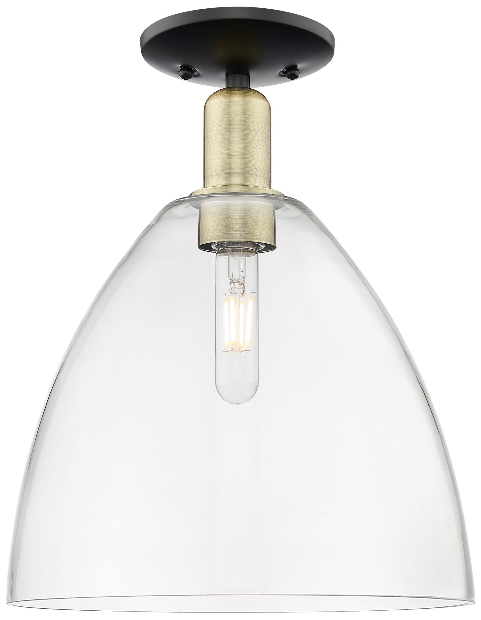 Arcadia Bristol 12"W Black And Brass Semi.Flush Mount With Clear Shade
