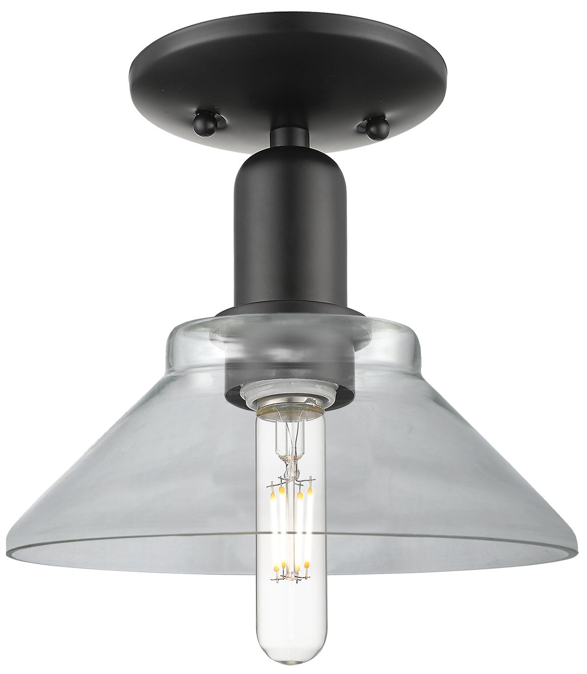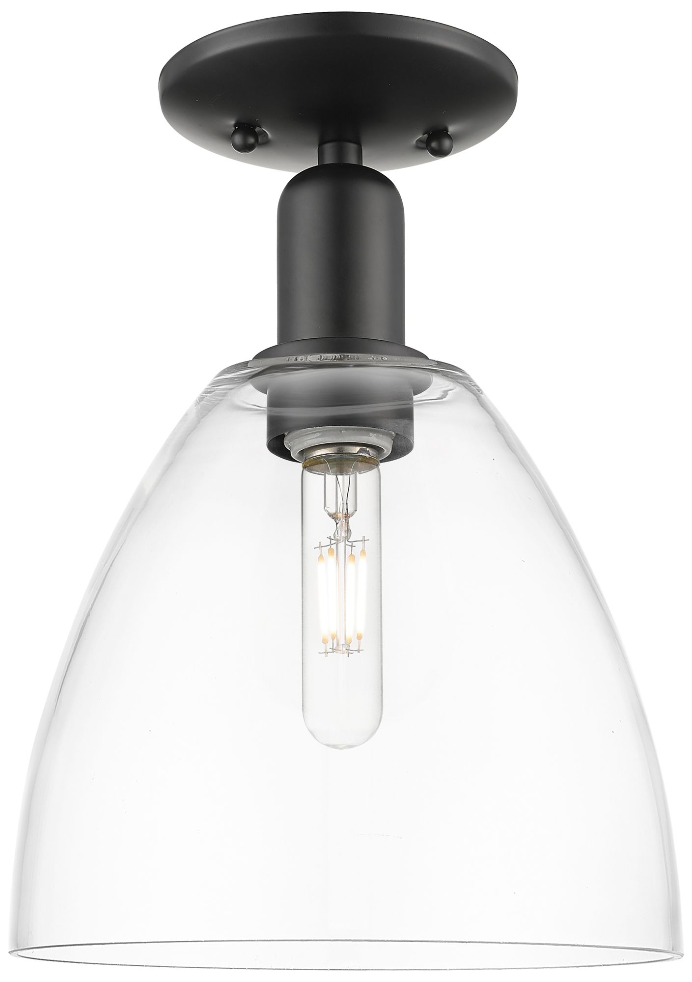 Arcadia Orwell 8" Wide Matte Black Semi.Flush Mount With Clear Shade