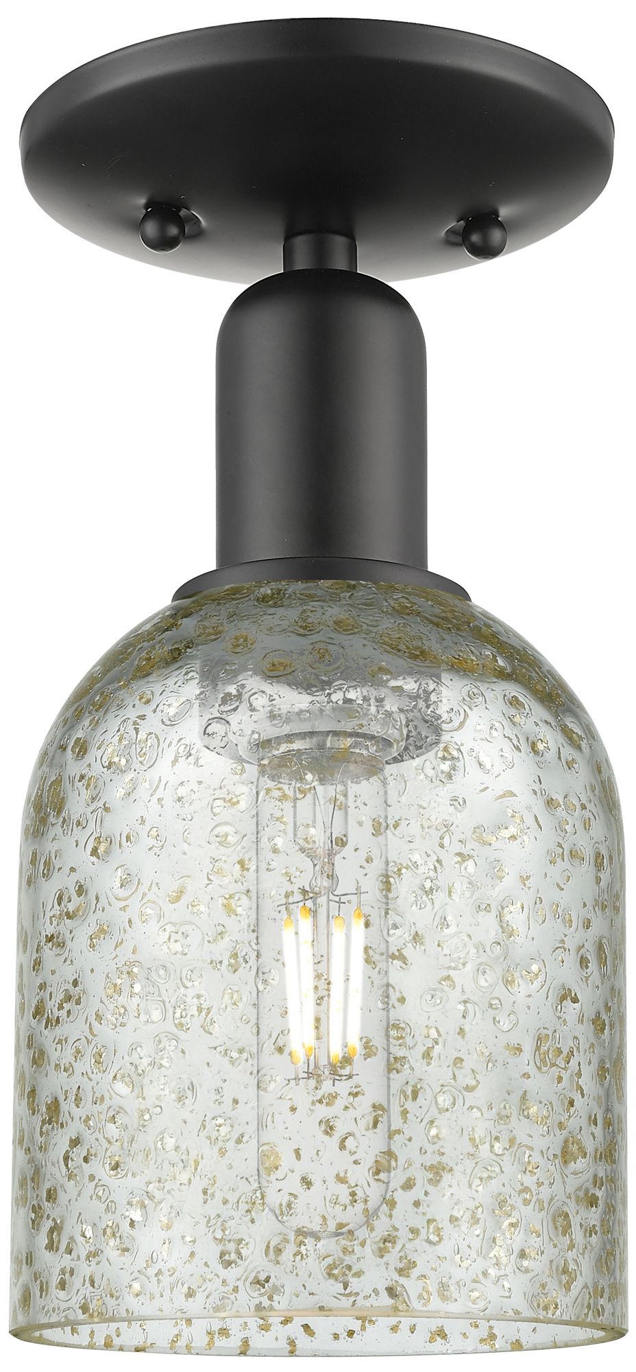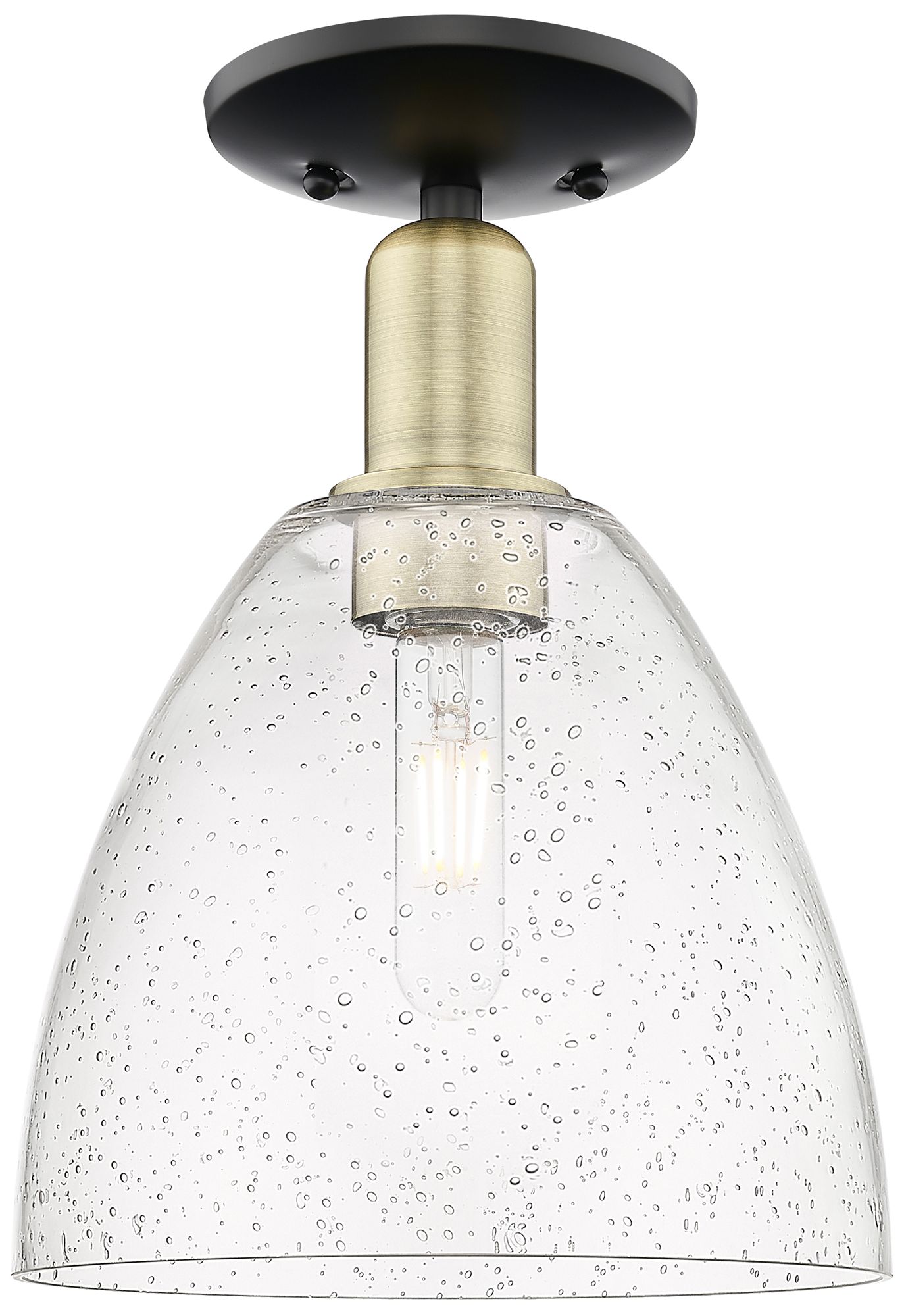 Arcadia Bristol 9"W Black And Brass Semi.Flush Mount With Seedy Shade