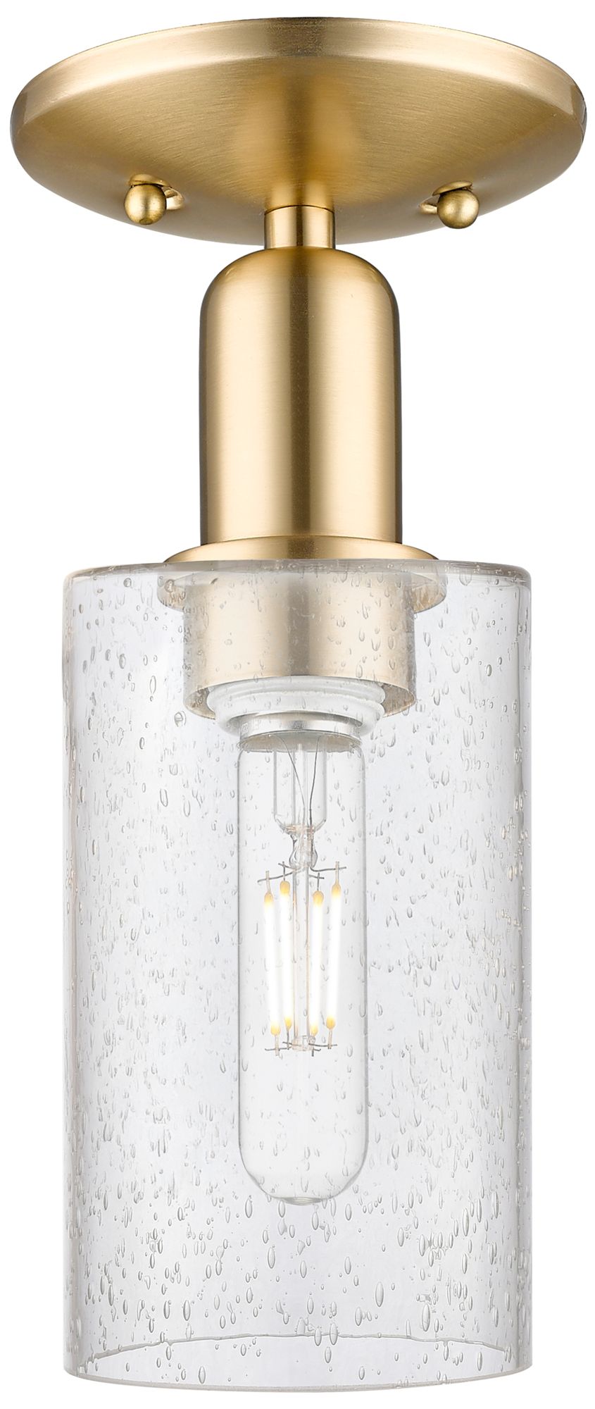 Arcadia Clymer 4"W Champagne Bronze Semi.Flush Mount With Seedy Shade