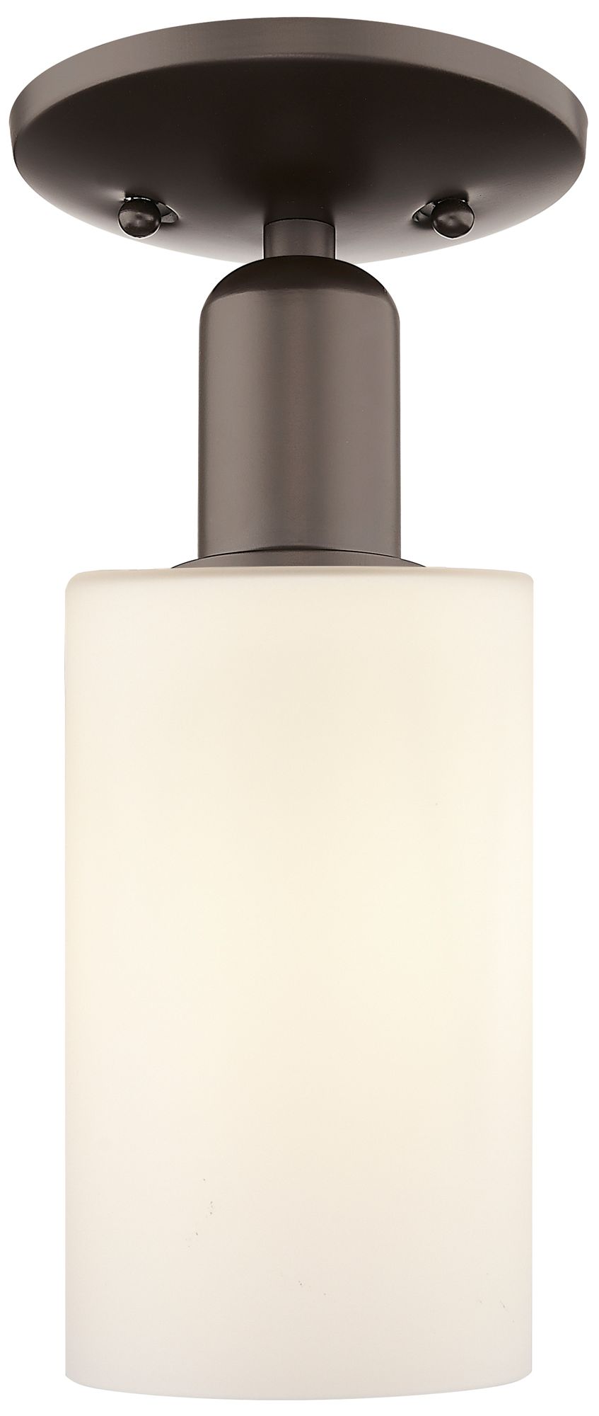 Arcadia Clymer 4"W Oiled Bronze Semi.Flush Mount w/ Matte White Shade