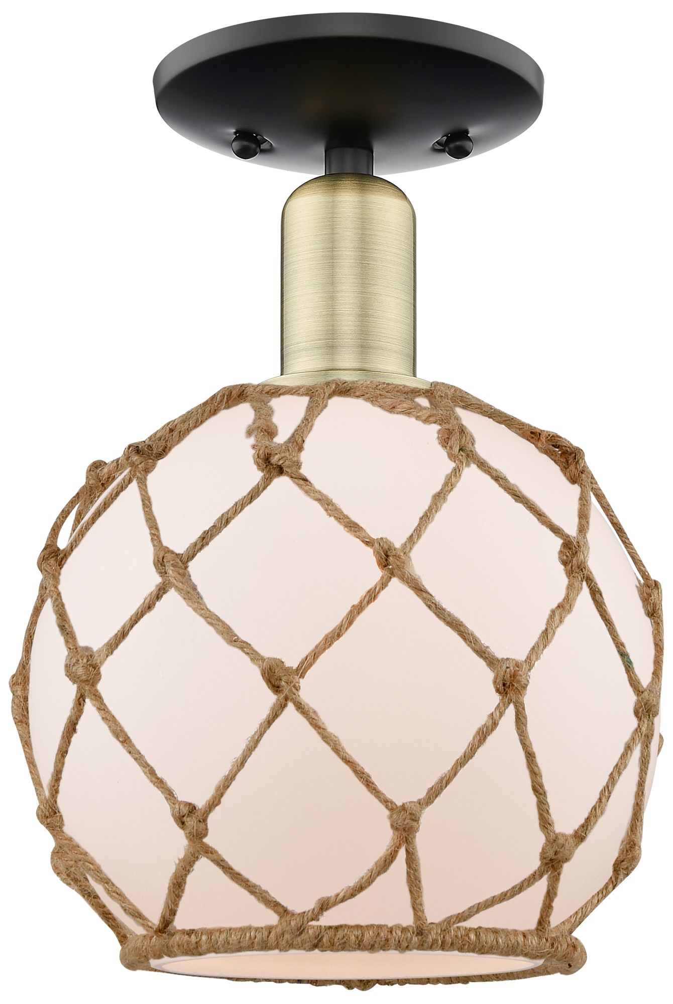 Arcadia Farmhouse 8"W Black Brass Semi-Flush w/ White Brown Shade