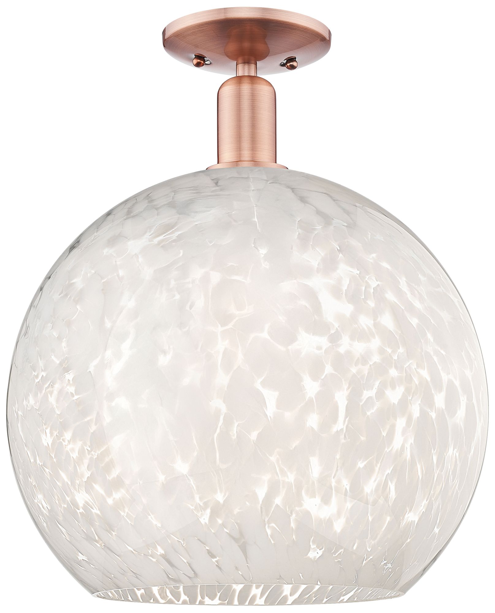 Arcadia White Mouchette 14" Wide Antique Copper Semi.Flush Mount With