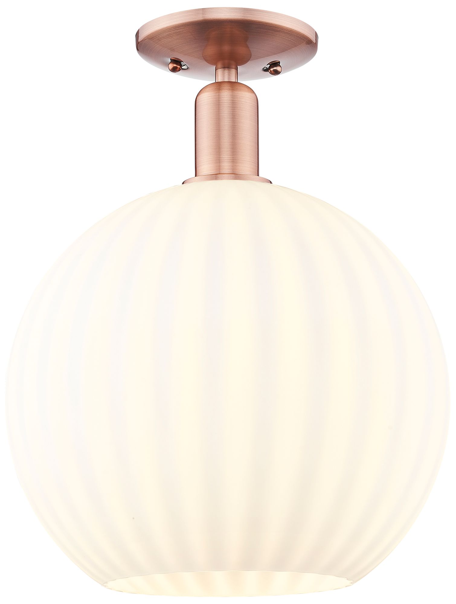 Arcadia White Venetian 12" Wide Antique Copper Semi.Flush Mount With