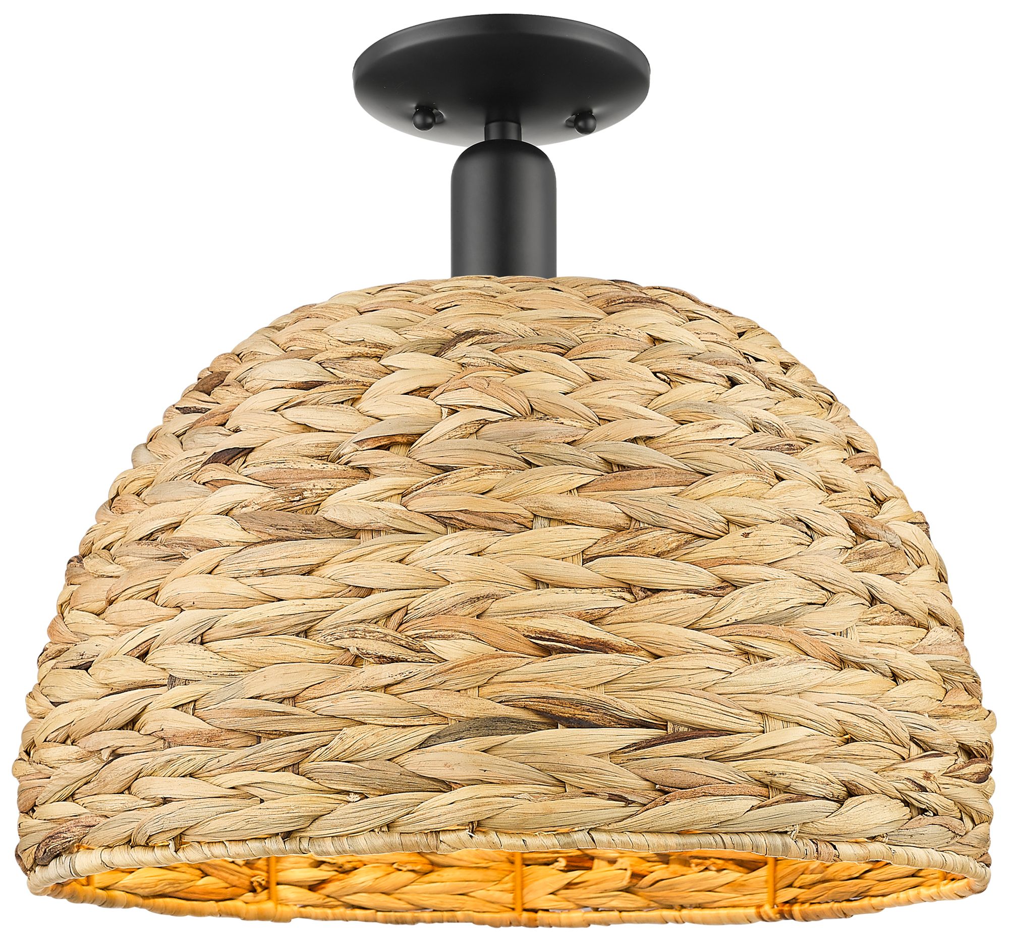 Woven Rattan 12" Wide Matte Black Semi-Flush Mount w/ Natural Shade