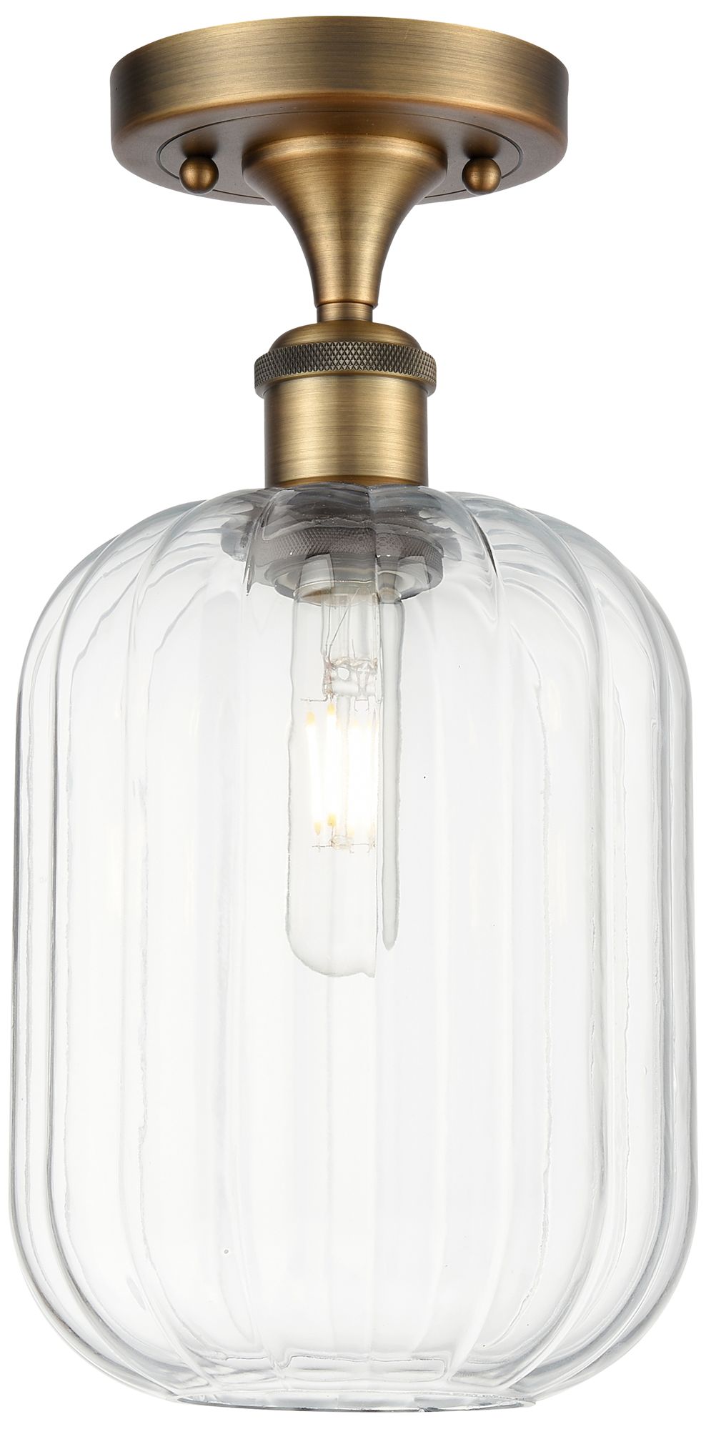 Ballston Chelsea 8"W Brushed Brass Semi.Flush Mount With Clear Shade