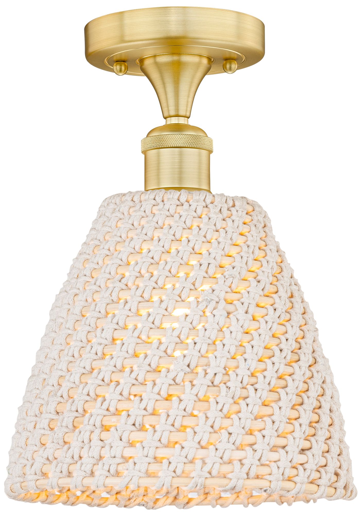 Edison Woven Rattan 12" Wide Satin Gold Semi.Flush Mount With